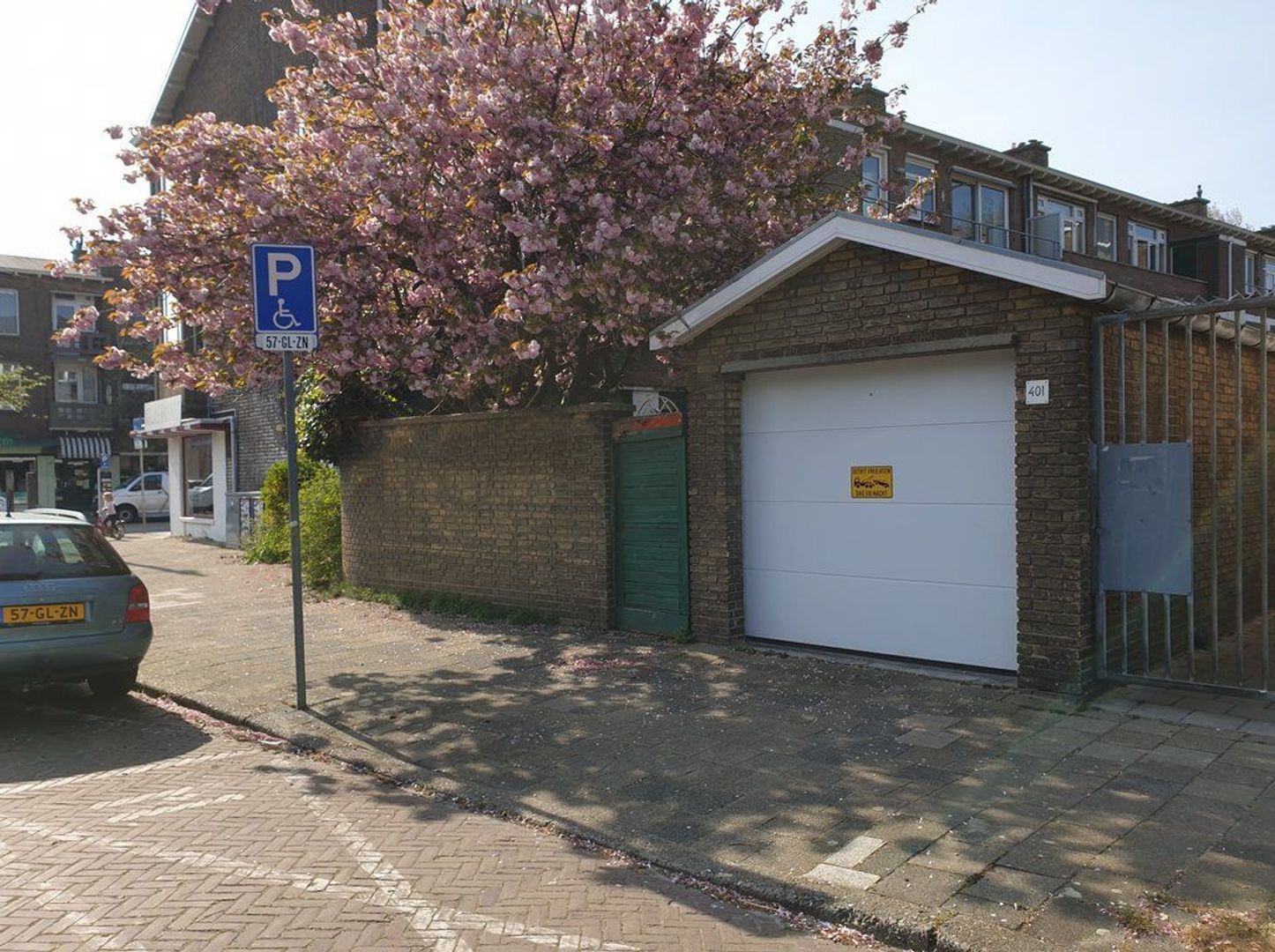 Op centrale locatie om de hoek met de Goudenregenstraat aan de Hanenburglaan 401 gelegen ruime vrijstaande garagebox 6.00 x 3.00 met een inwendige hoogte van 2,49.