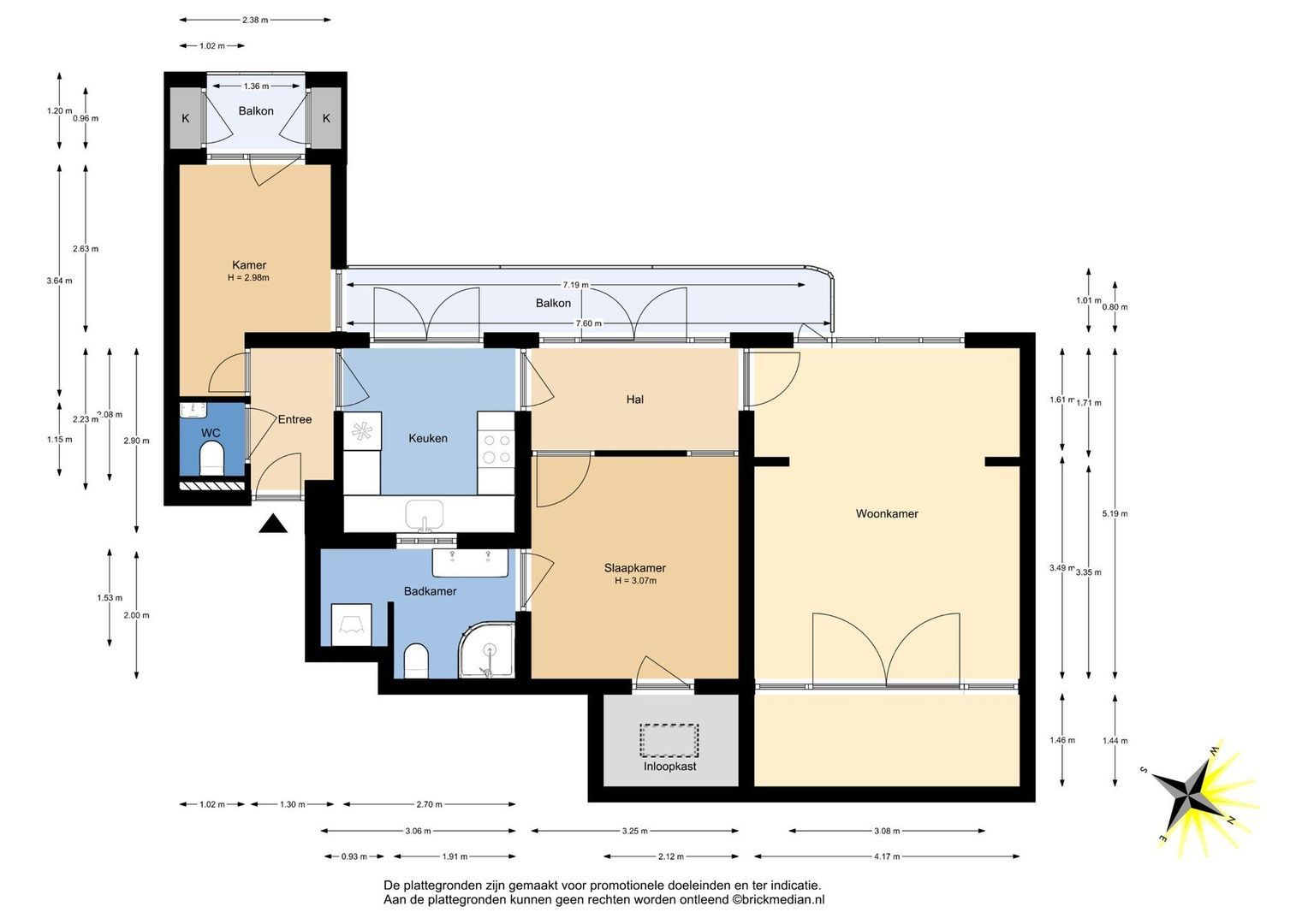 * 2 balkons, in totaal buitenruimte ca. 9.3m2