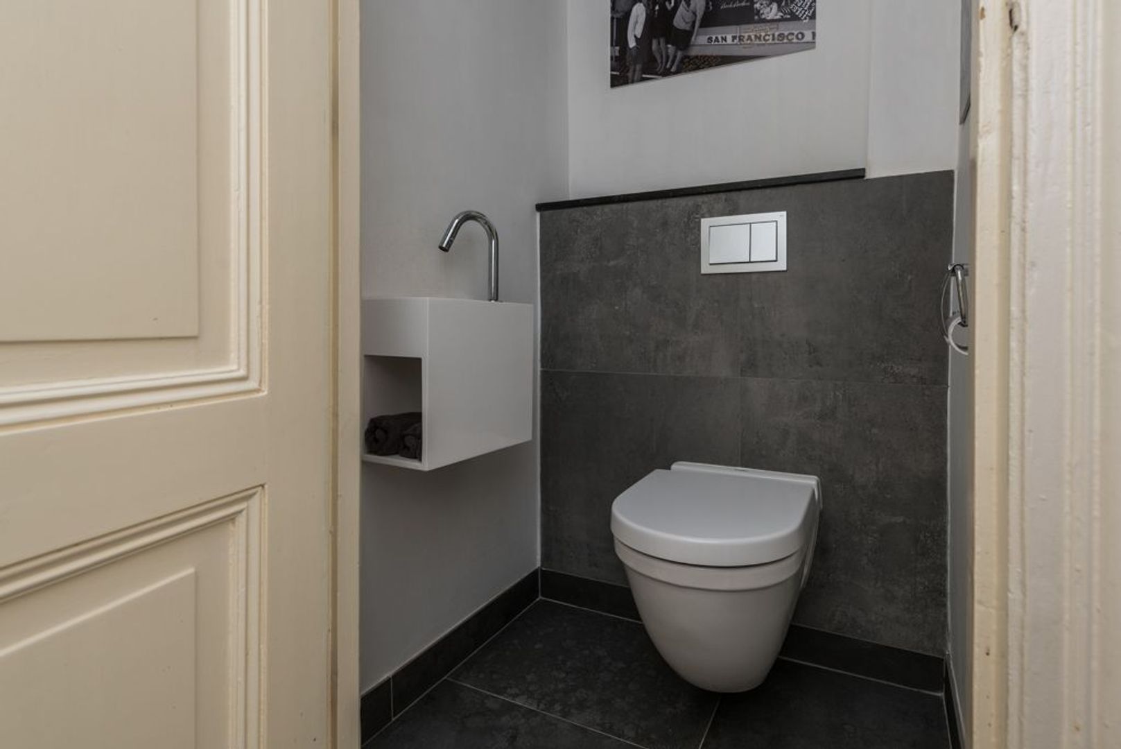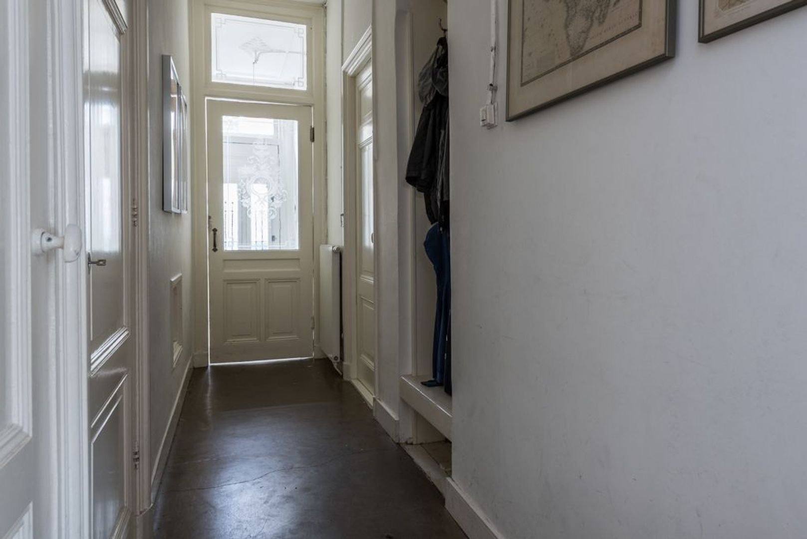 Entrance, vestibule, hall with storageroom and toilet with handbasin.