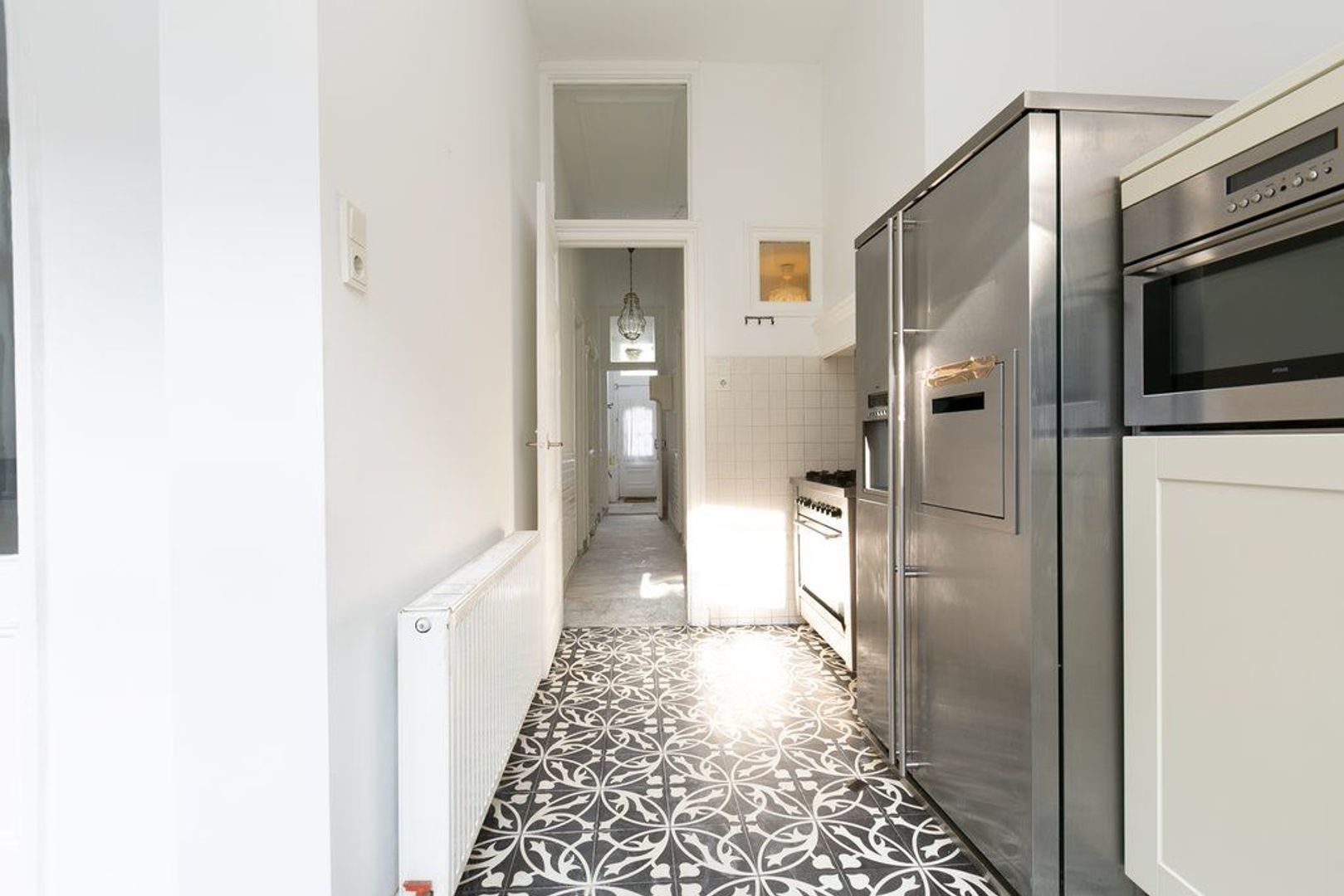 The house is situated on a beautiful green canal overlooking houseboats and trees within easy reach of the Fred, the centre, the beach, the international quarter and a number of international schools. A quick walk to the Reinkenstraat, a typical Dutch shopping street, with trendy bars, restaurants, specialty shops etc. and convenient public transport to both Central Station (tram 3) and Holland Spoor (tram 11) are an added bonus. Moreover, ample street parking and little traffic, considering its location, make it a perfect family home. The house has also been well maintained. It combines the spirit of the old and the comfort of the new and is a reflection of a home that has been lived in for more than 115 years. It has large spacious rooms, high ceilings, and old decorations.