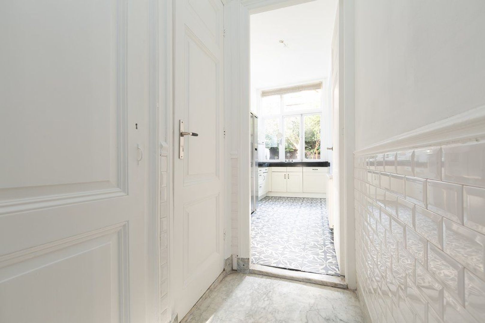 This three layer townhouse is fully renovated with an eye for original details such as ornamental ceilings, massive oak floors, panel doors and stained glass windows and doors. A delightful garden on the south-west with outdoor kitchen.
