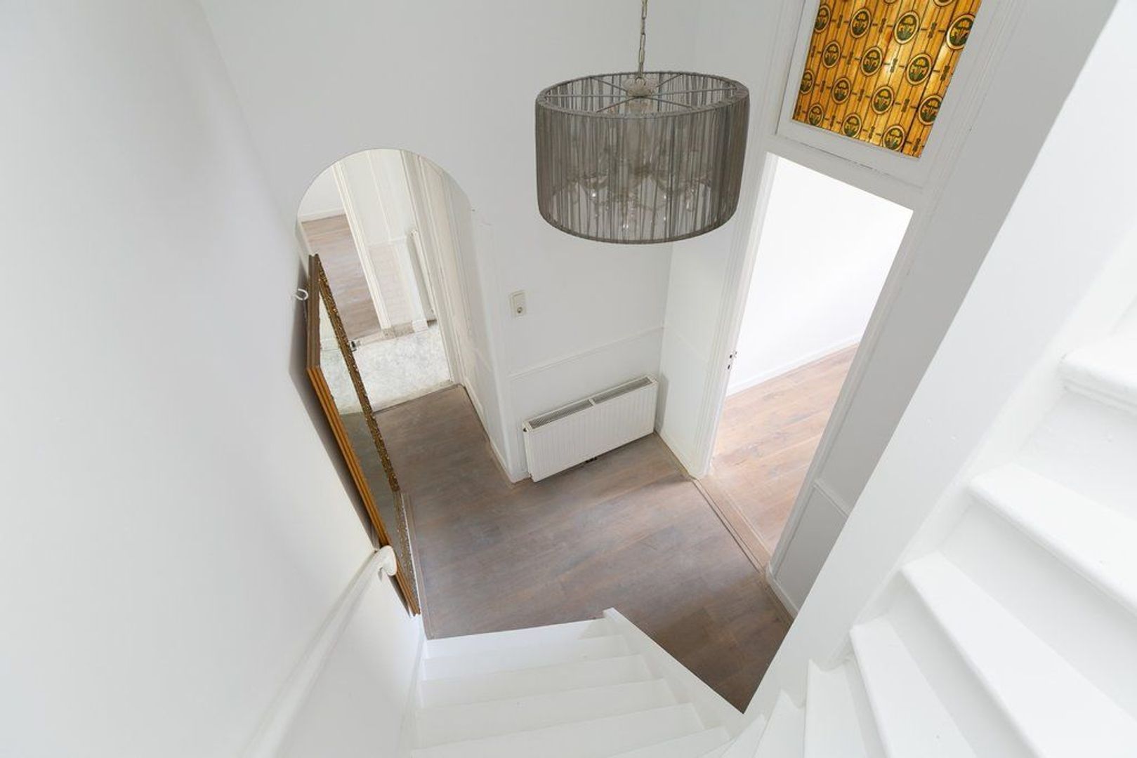 Stairs to the attic, landing with second bathroom with shower and washbasin. Cupboard with washing machine and extra connection for a dryer and a fourth, a bit smaller bedroom for children or quests.