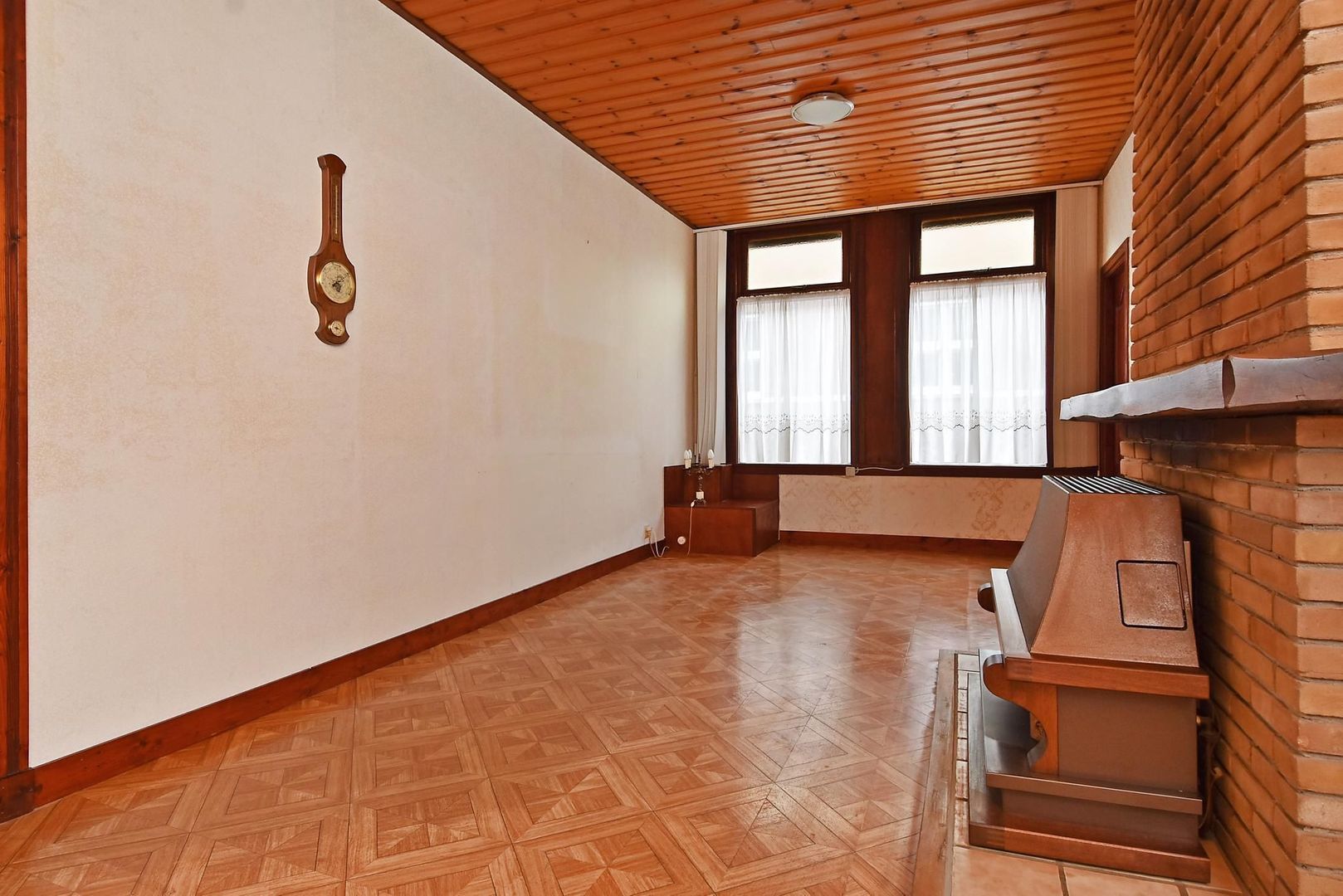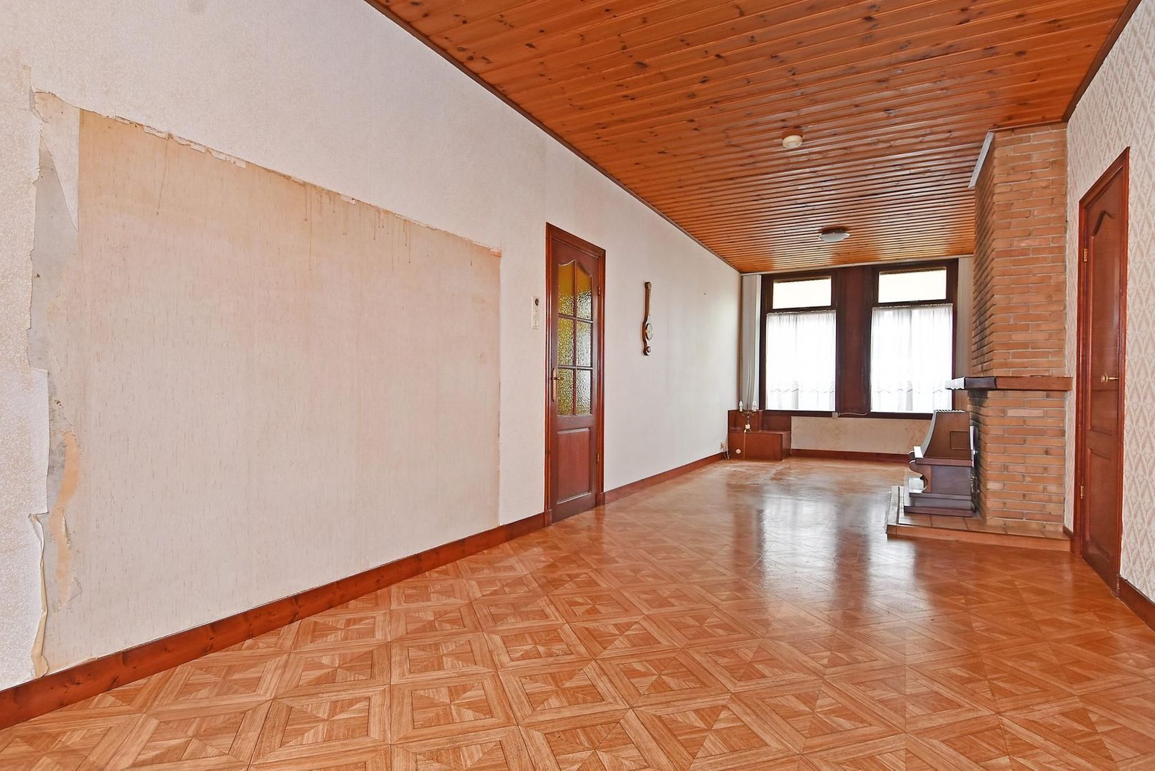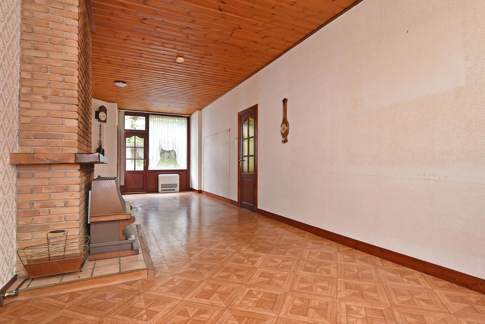 De woonkamer is groot genoeg om aan de achterzijde nog een extra slaapkamer te creëren of groot genoeg om er een open keuken te realiseren waardoor de huidige keuken als slaapkamer of badkamer gebruikt kan gaan worden.