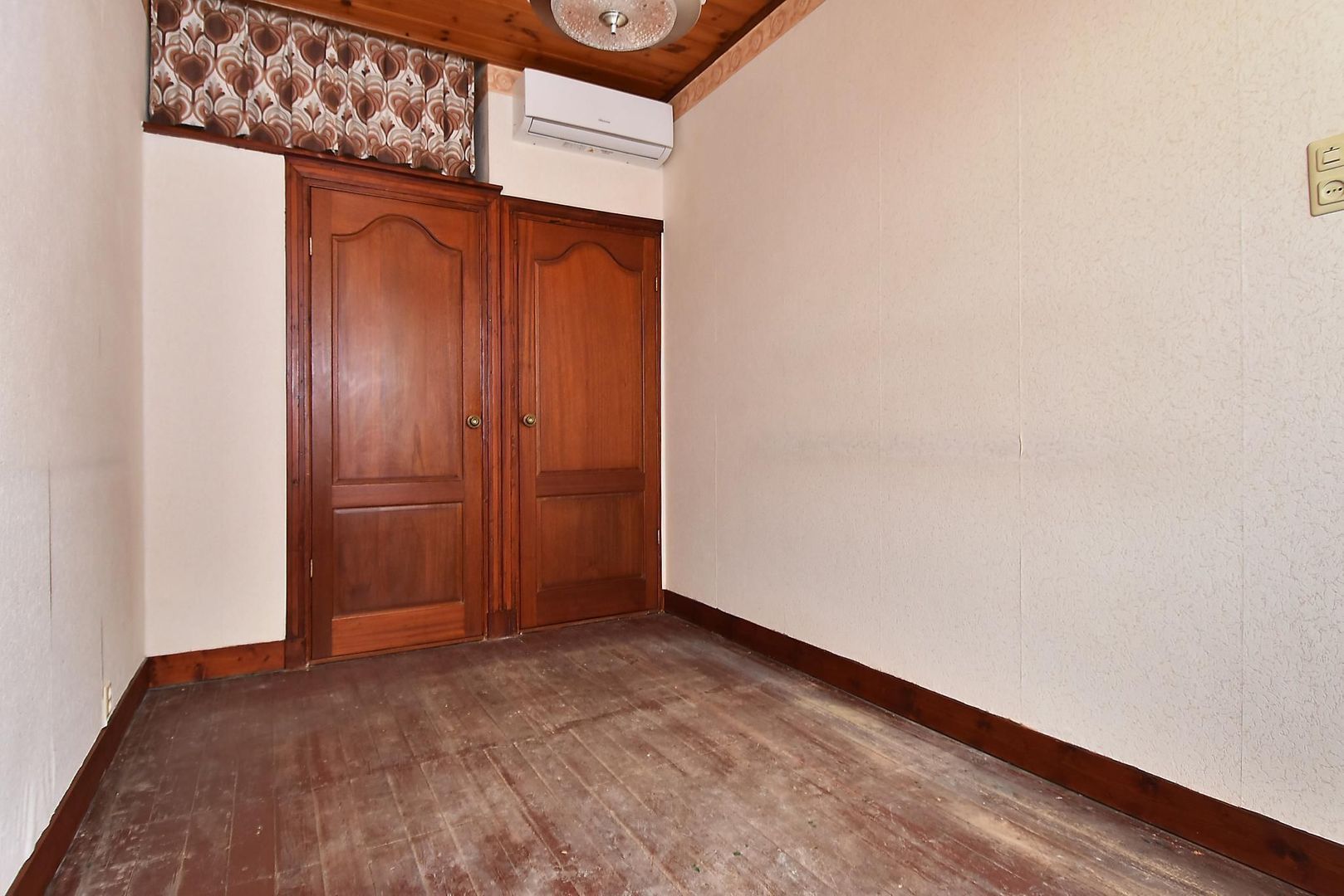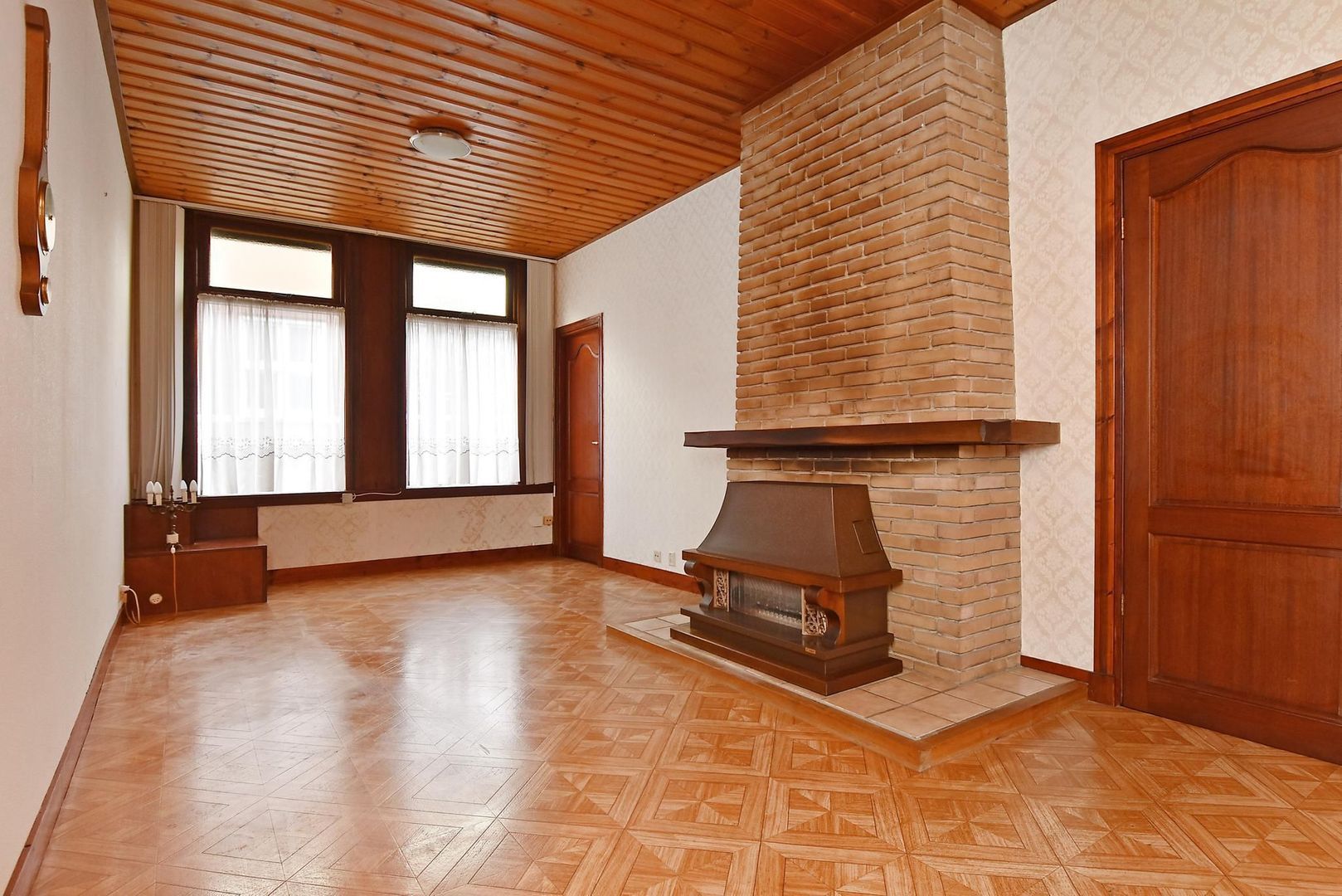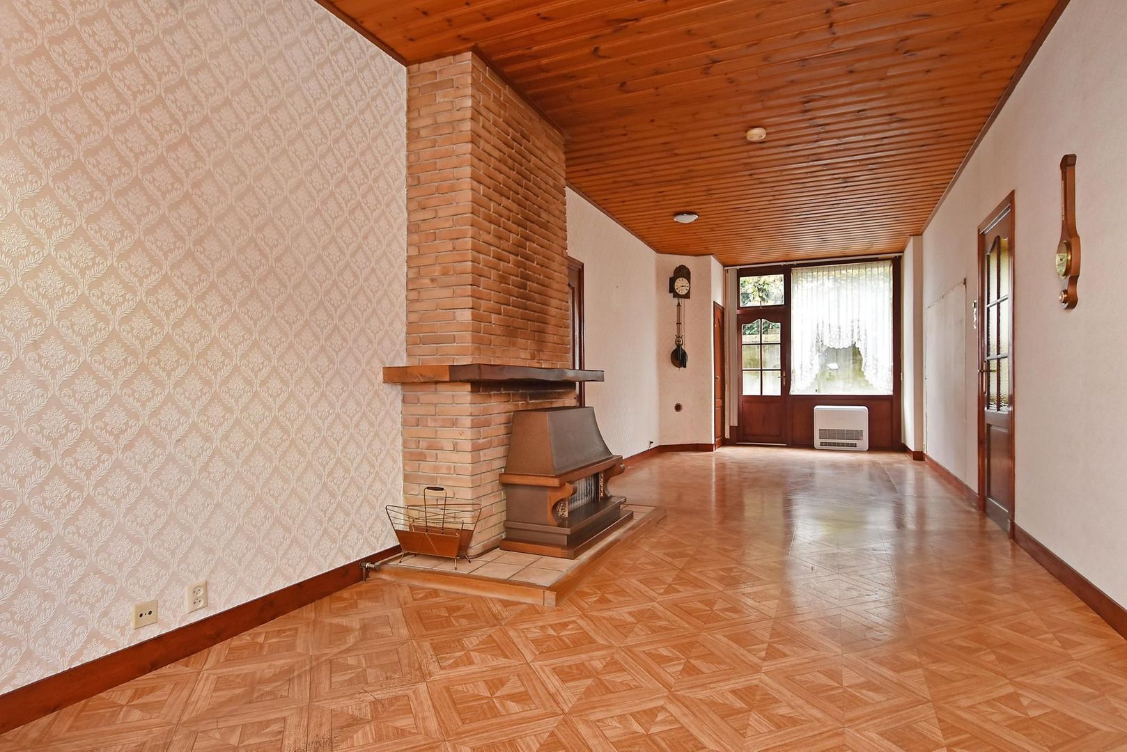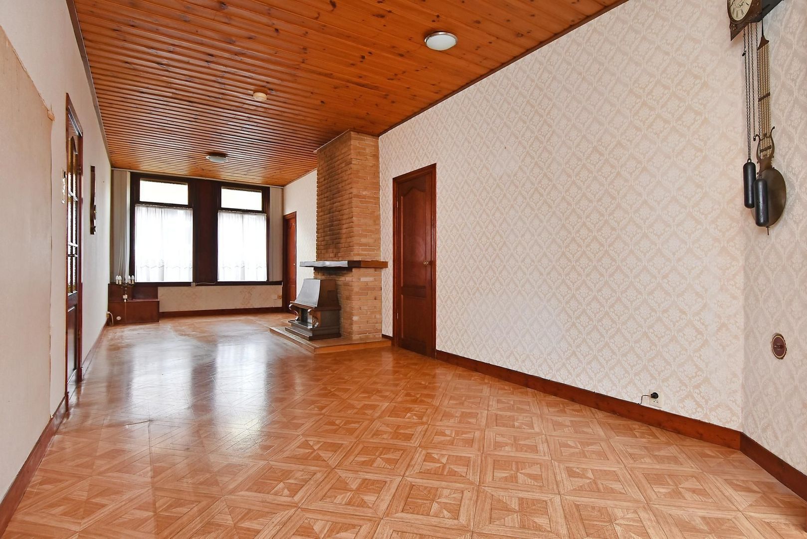 De woonkamer is groot genoeg om aan de achterzijde nog een extra slaapkamer te creëren of groot genoeg om er een open keuken te realiseren waardoor de huidige keuken als slaapkamer of badkamer gebruikt kan gaan worden.