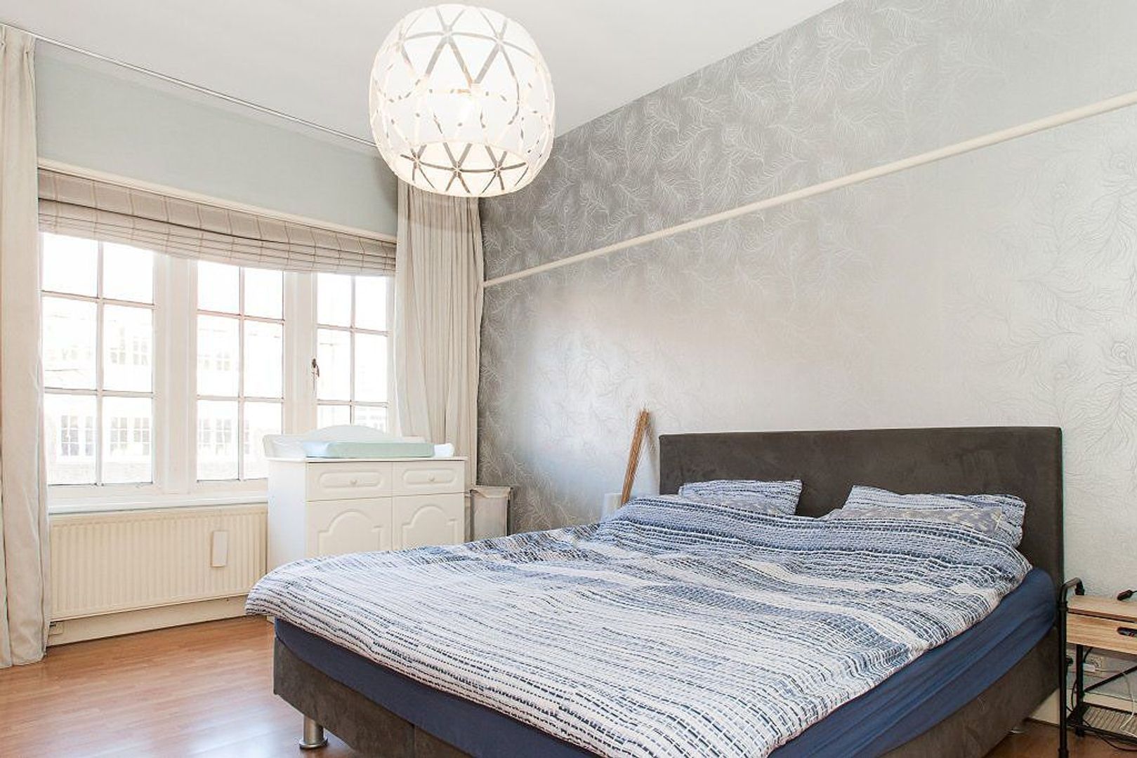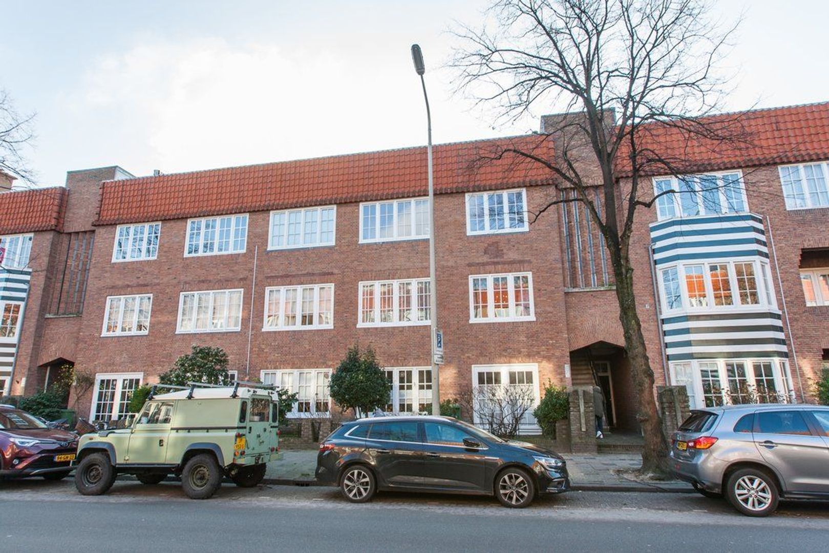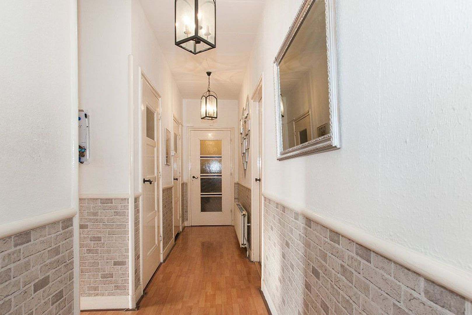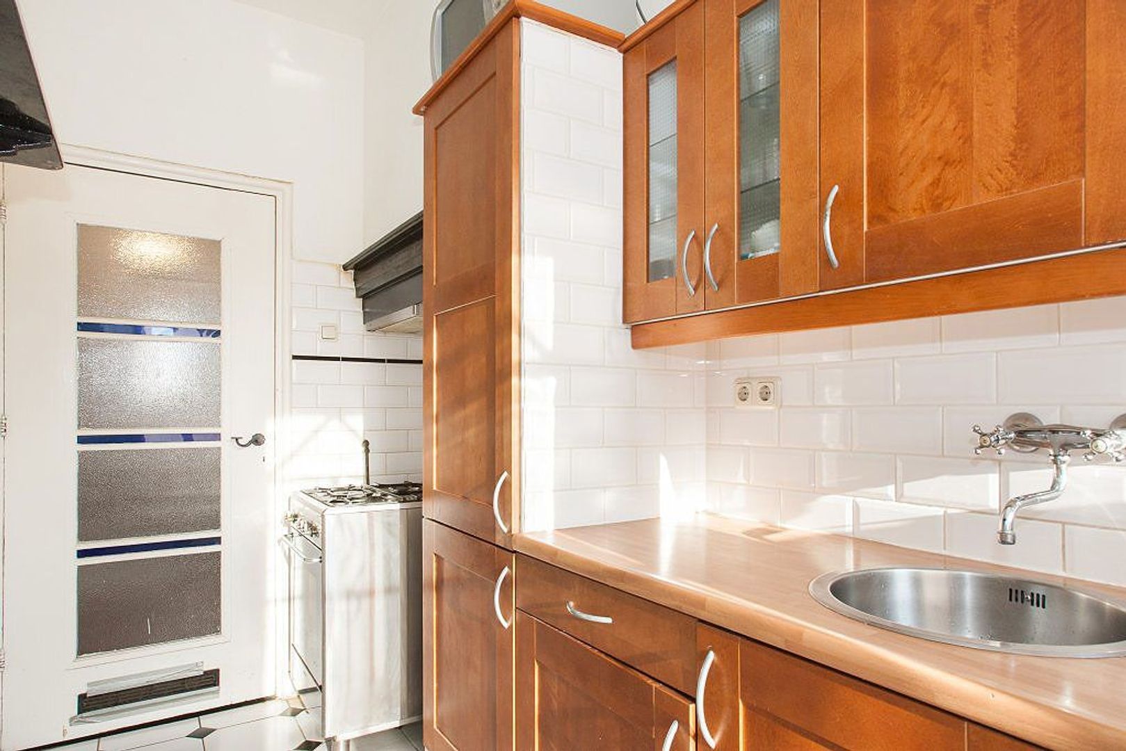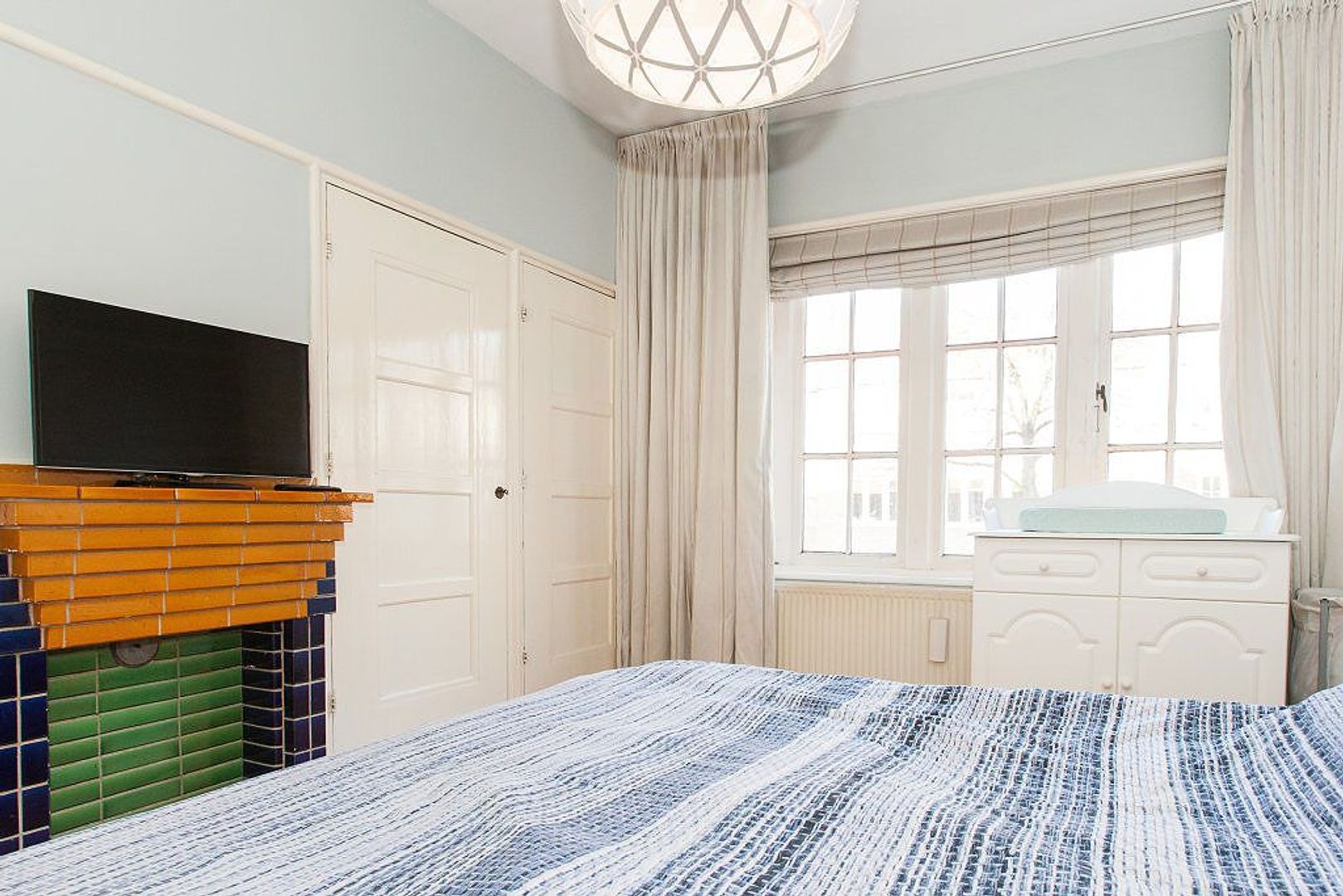 Indeling: Karakteristiek portiek, entree appartement, vestibule met meterkast (4 groepen en ALS), lange centrale hal welke toegang biedt tot iedere ruimte, toegang tot de aan de voorzijde gelegen charmante woonkamer ensuite, u vindt hier veel van de kenmerkende Amsterdamse School stijldetails, zoals de paneeldeuren, fraaie schouw, glas in roede ramen, veel bergkasten. De woonkamer is over de breedte van de woning gelegen en heeft een prima maatvoering 765x500, veel handige bergruimte dankzij de vaste kasten, 2 vaste suitekasten en 2 vaste kasten links en rechts van de fraaie schouw. De hoofdslaapkamer is eveneens aan de voorzijde gelegen en is met zijn afmetingen 500x339 (exclusief vaste kastenwand) royaal te noemen, ook hier vindt u de kenmerkende stijldetails terug, fraaie glas in roede ramen en vaste kastenwand met fraaie schouw ertussenin. Recht tegenover de entree naar de slaapkamer bevindt zich aan de andere zijde van de hal een vaste kast. Toegang tot de aan de achterzijde gelegen 2e slaapkamer 458x236 met vaste bergkast en met toegang tot het balkon. De keuken is eveneens aan de achterzijde gelegen en is voorzien van een rvs-gasfornuis, inbouwkoel/vries combinatie en vaatwasmachine, het balkon 443x114 is ook vanuit de keuken te bereiken. Separate toiletruimte. Keurige badkamer met ligbad en wastafel.