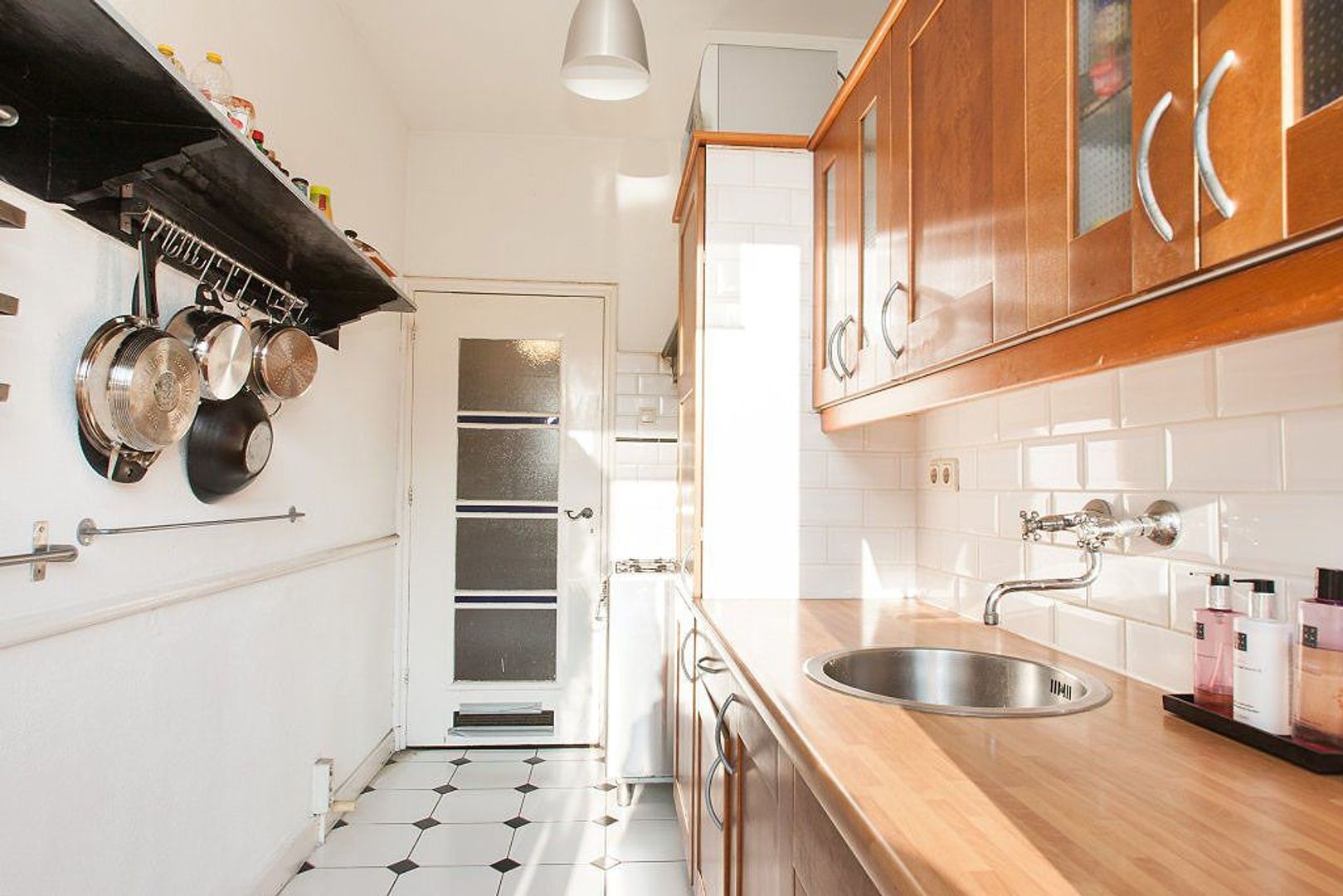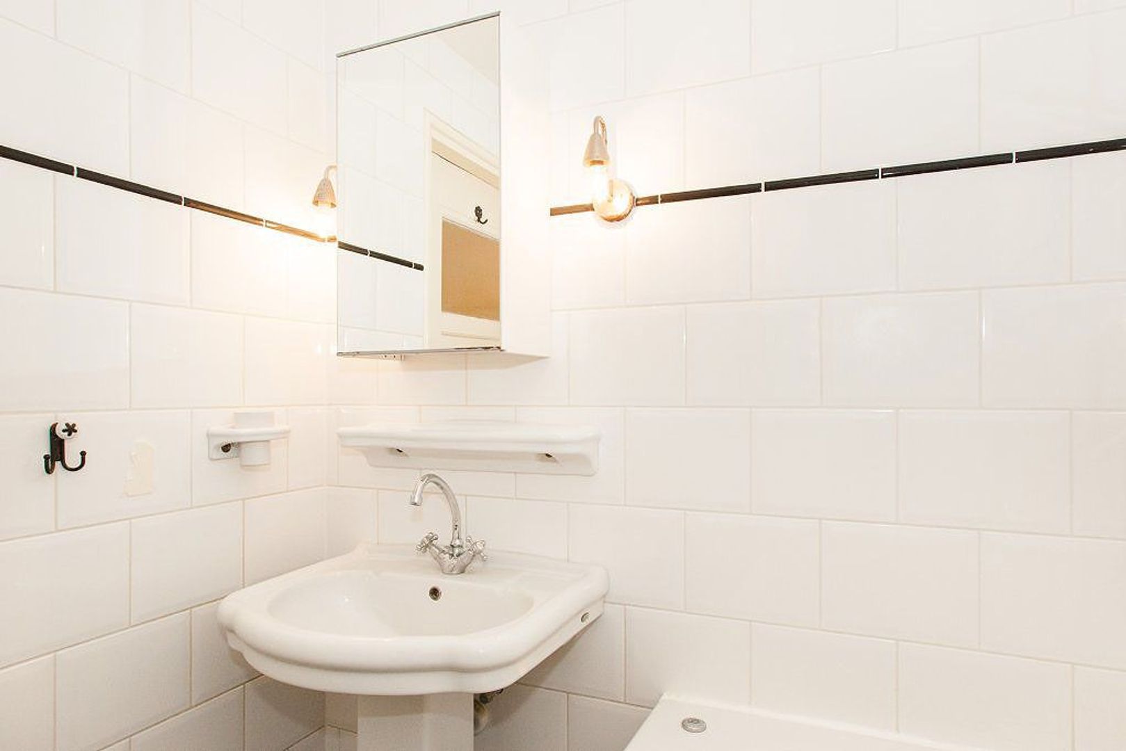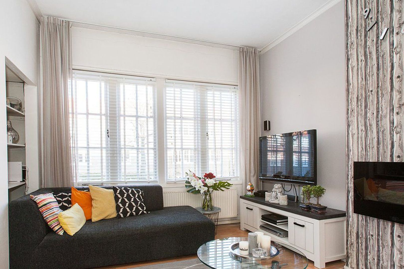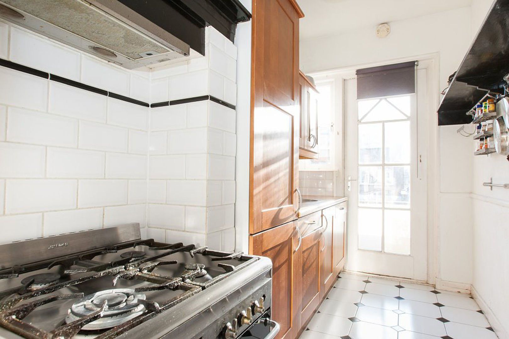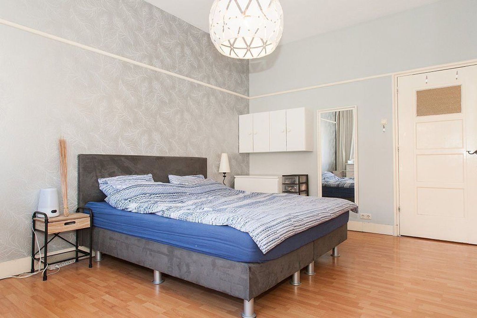 Indeling: Karakteristiek portiek, entree appartement, vestibule met meterkast (4 groepen en ALS), lange centrale hal welke toegang biedt tot iedere ruimte, toegang tot de aan de voorzijde gelegen charmante woonkamer ensuite, u vindt hier veel van de kenmerkende Amsterdamse School stijldetails, zoals de paneeldeuren, fraaie schouw, glas in roede ramen, veel bergkasten. De woonkamer is over de breedte van de woning gelegen en heeft een prima maatvoering 765x500, veel handige bergruimte dankzij de vaste kasten, 2 vaste suitekasten en 2 vaste kasten links en rechts van de fraaie schouw. De hoofdslaapkamer is eveneens aan de voorzijde gelegen en is met zijn afmetingen 500x339 (exclusief vaste kastenwand) royaal te noemen, ook hier vindt u de kenmerkende stijldetails terug, fraaie glas in roede ramen en vaste kastenwand met fraaie schouw ertussenin. Recht tegenover de entree naar de slaapkamer bevindt zich aan de andere zijde van de hal een vaste kast. Toegang tot de aan de achterzijde gelegen 2e slaapkamer 458x236 met vaste bergkast en met toegang tot het balkon. De keuken is eveneens aan de achterzijde gelegen en is voorzien van een rvs-gasfornuis, inbouwkoel/vries combinatie en vaatwasmachine, het balkon 443x114 is ook vanuit de keuken te bereiken. Separate toiletruimte. Keurige badkamer met ligbad en wastafel.