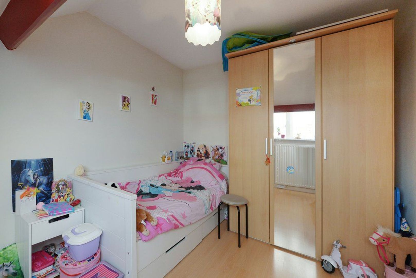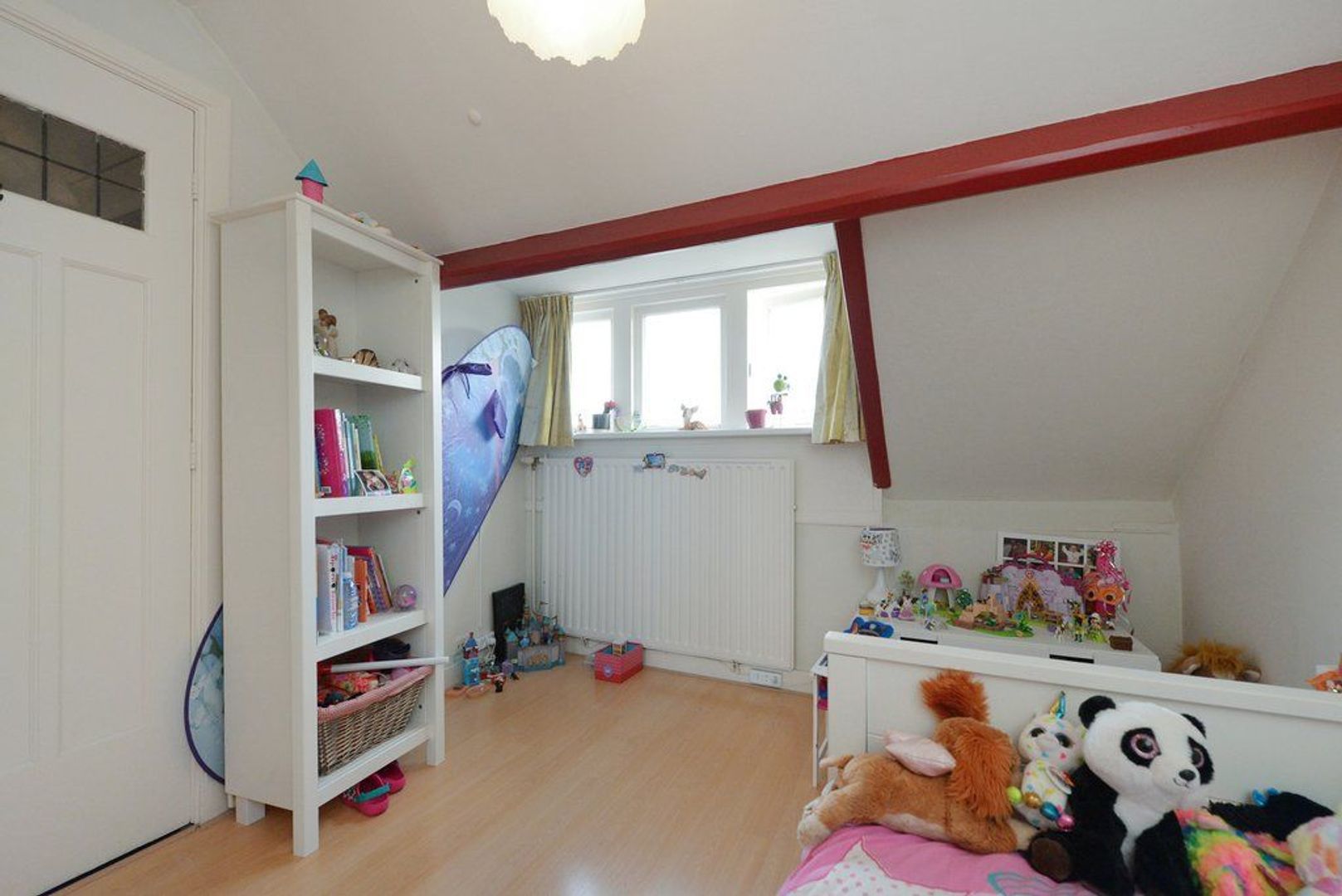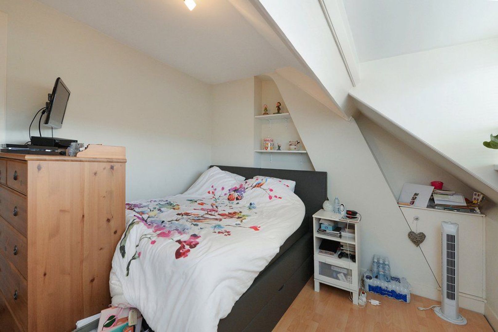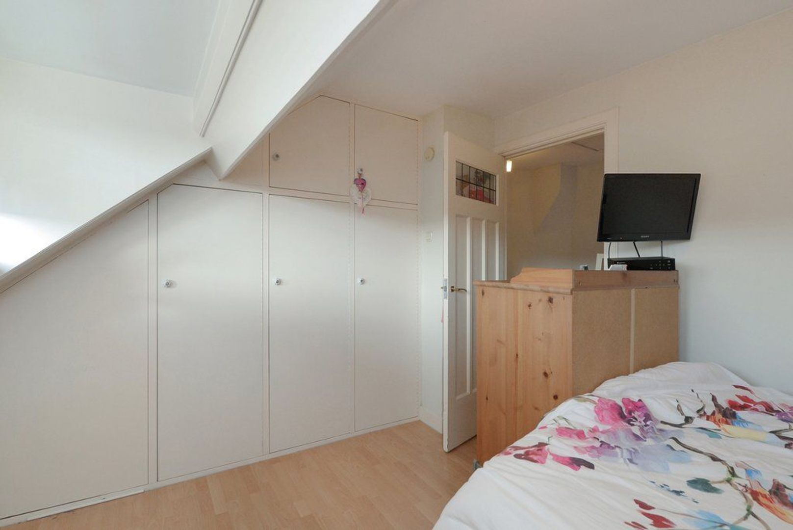Trap naar 2e etage: overloop, met aan de achterzijde flinke berging alwaar opstelplaats wasmachine en droger maar ook CV combi Ketel, REMEHA AVANTA 2014. Achterslaapkamer 371x281 en ruime voorslaapkamer 330x454. Tenslotte veel bergruimte in de bovengelegen vliering.