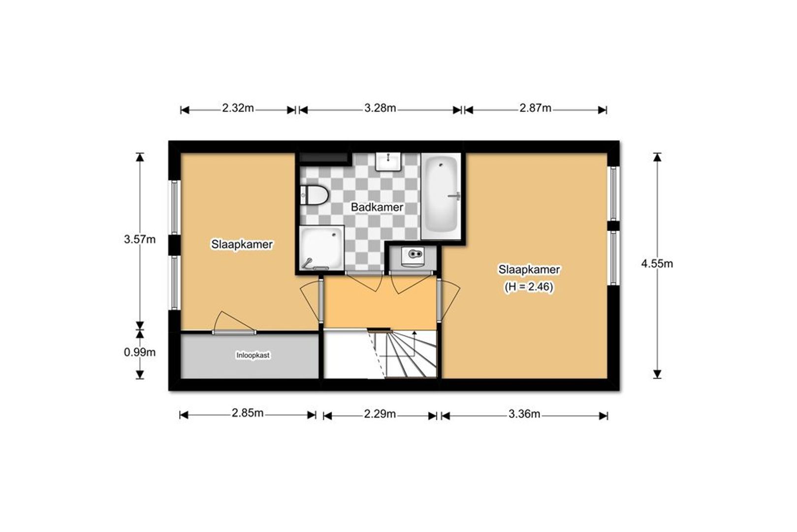 (ca. 3.57x2.85/2.32) met inloopkast (ca. 2.85x0.99).