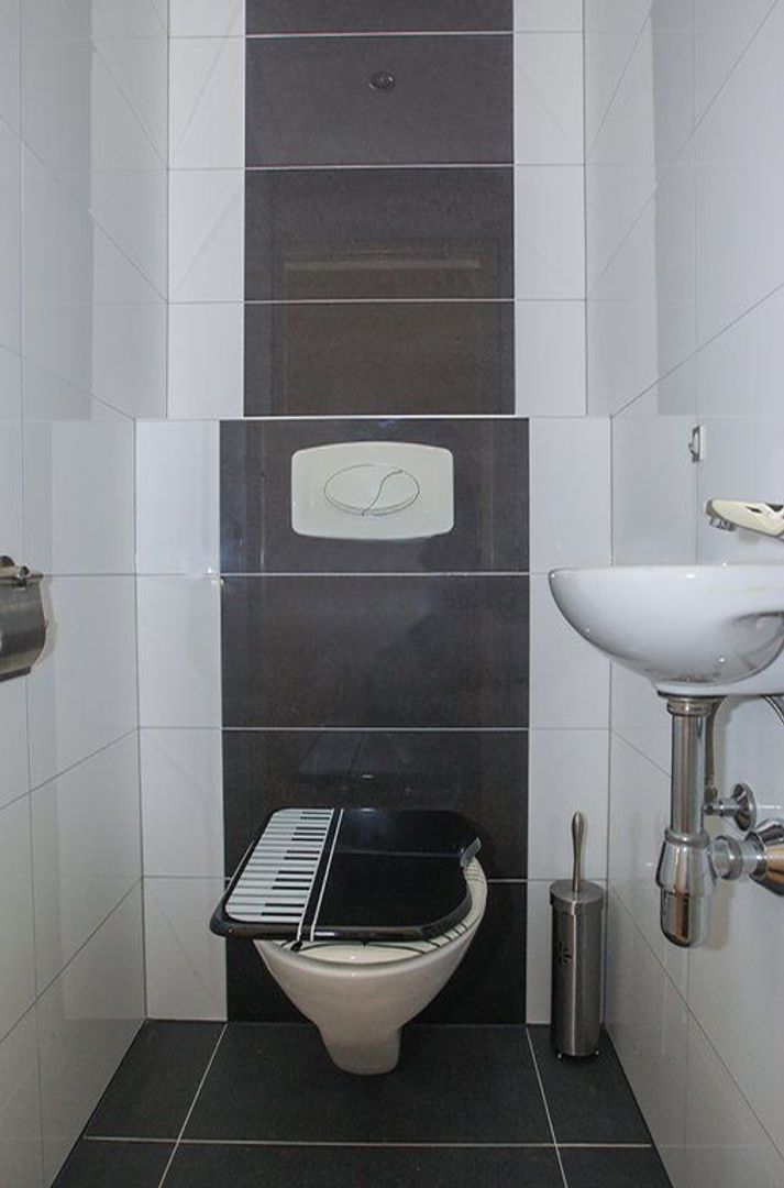 Ruime hal, toilet met fonteintje en bergkast met opstelplaats cv-ketel en wasmachine-aansluiting.