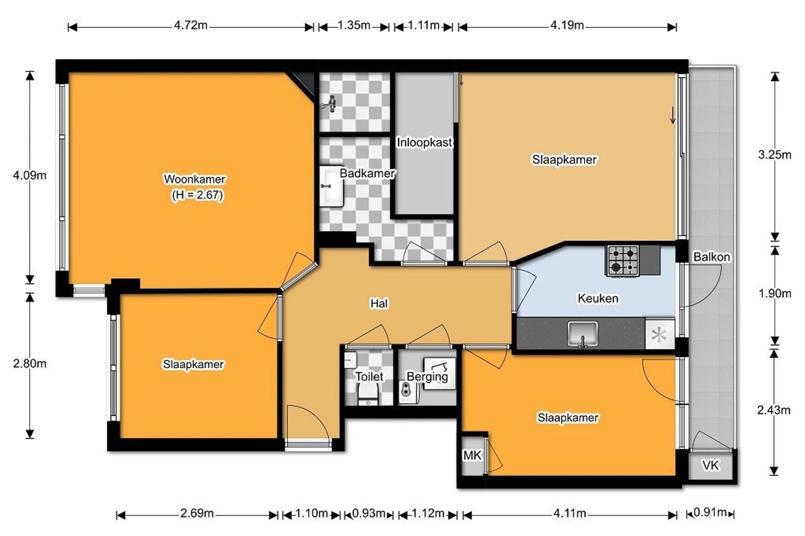Bovenstaande informatie is door ons met de hoogst nodige zorgvuldigheid samengesteld. Door Dekkers de Groot Makelaardij wordt echter geen enkele aansprakelijkheid aanvaard voor enige onvolledigheid, onjuistheid of anderszins, dan wel de gevolgen daarvan. Alle opgegeven maten en oppervlakten zijn indicatief. De woning is gemeten met gebruikmaking van de Meetinstructie, die is gebaseerd op de normen zoals vastgelegd in NEN-2580. De Meetinstructie is bedoeld om een meer eenduidige manier van meten toe te passen voor het geven van een indicatie van gebruiksoppervlakte. De Meetinstructie sluit verschillen in meetuitkomsten niet volledig uit, door bijvoorbeeld interpretatieverschillen, afrondingen of beperkingen bij het uitvoeren van de meting. Hoewel wij de woning zorgvuldig hebben opgemeten, wordt noch door Dekkers de Groot Makelaardij b.v., noch door de verkoper enige aansprakelijkheid aanvaard voor afwijkingen in de opgegeven maten. Koper wordt in de gelegenheid gesteld om de opgegeven maten te (laten) controleren.