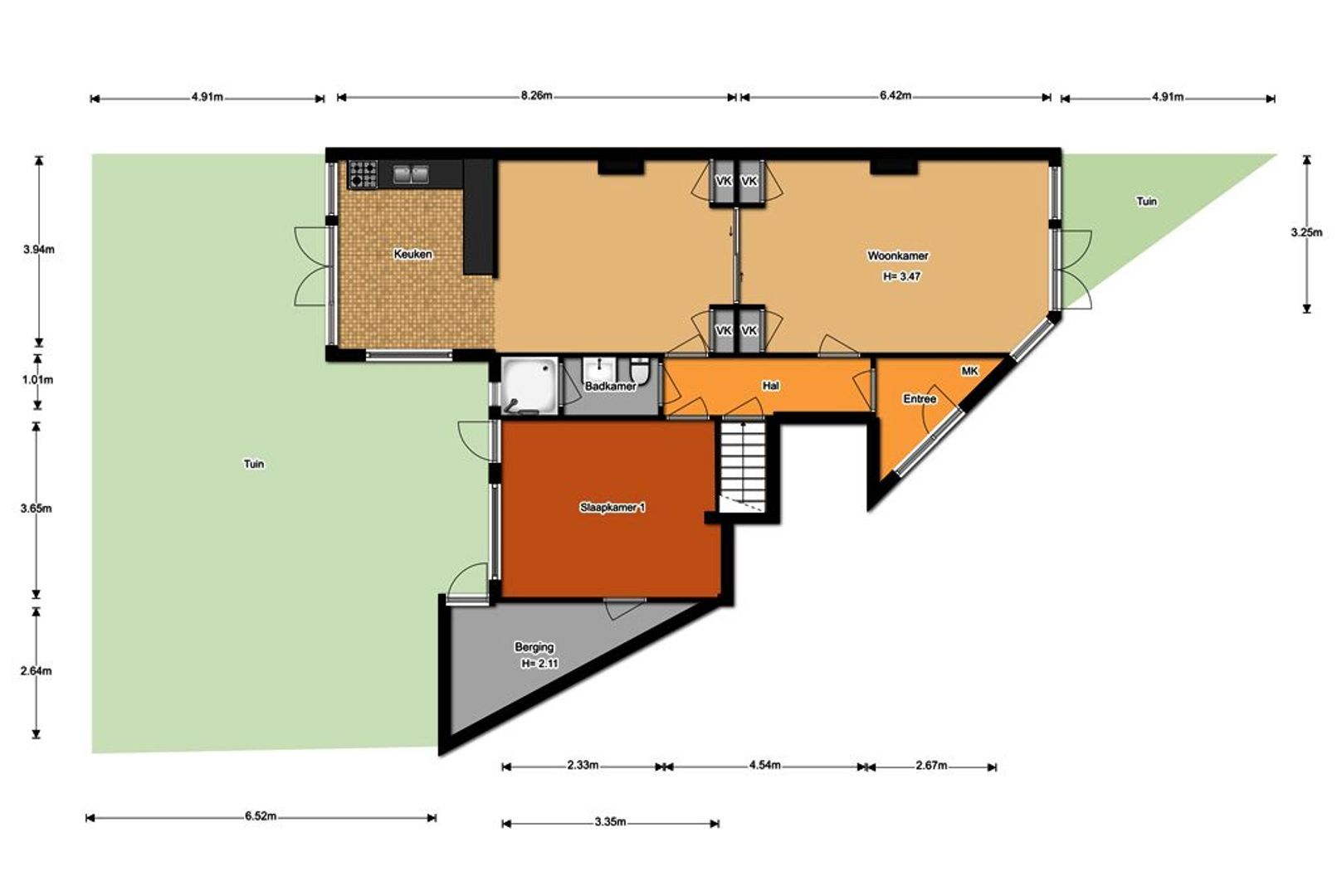 - Zie voor de indeling van de woning de plattegronden met maatvoering