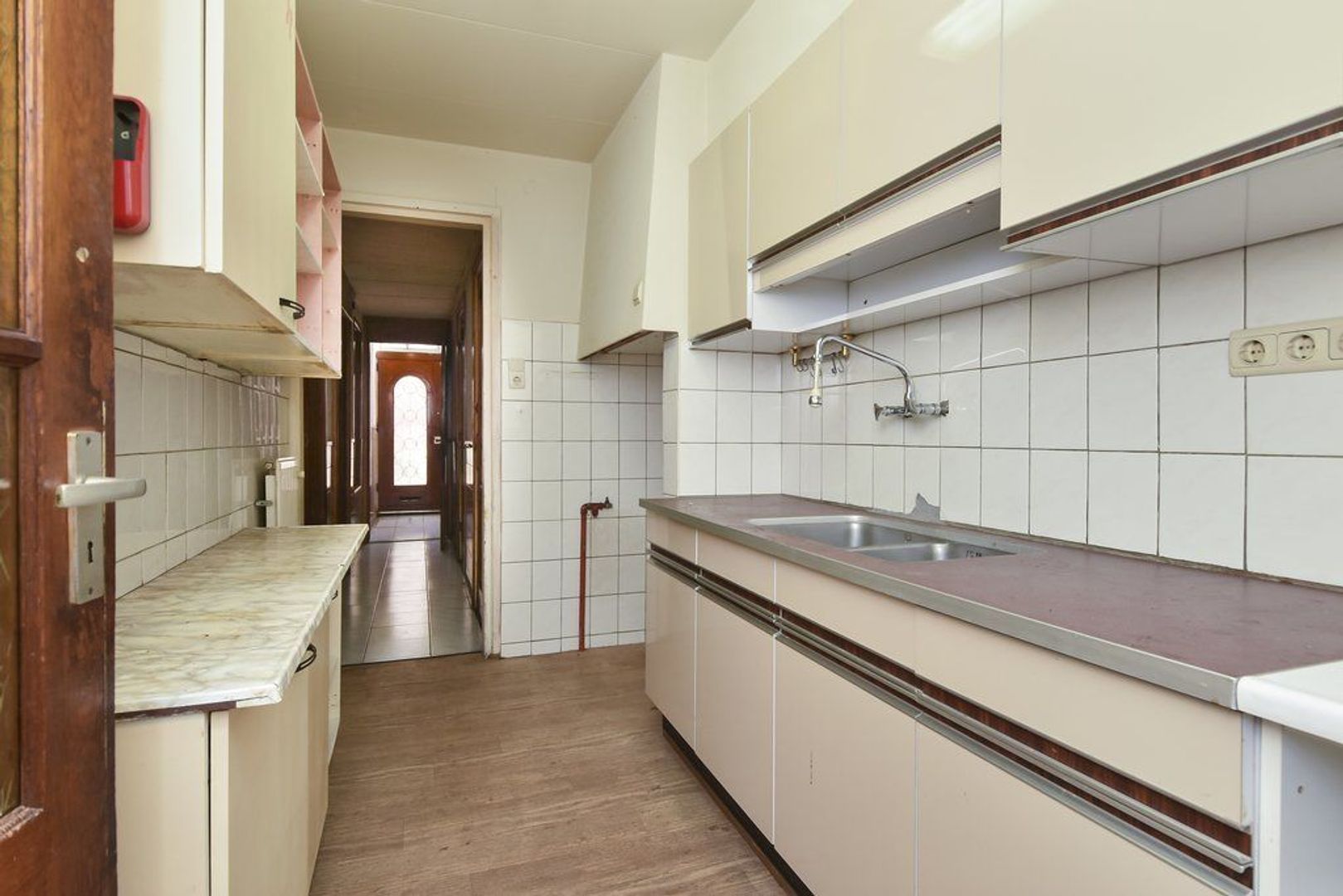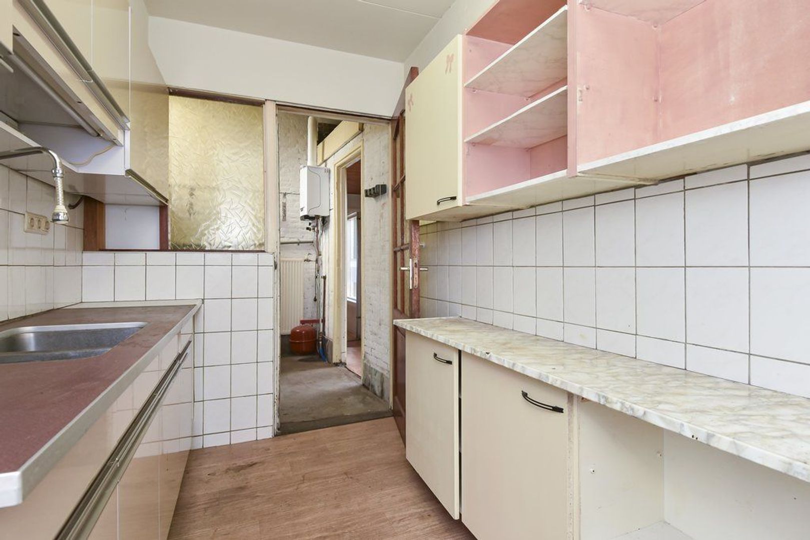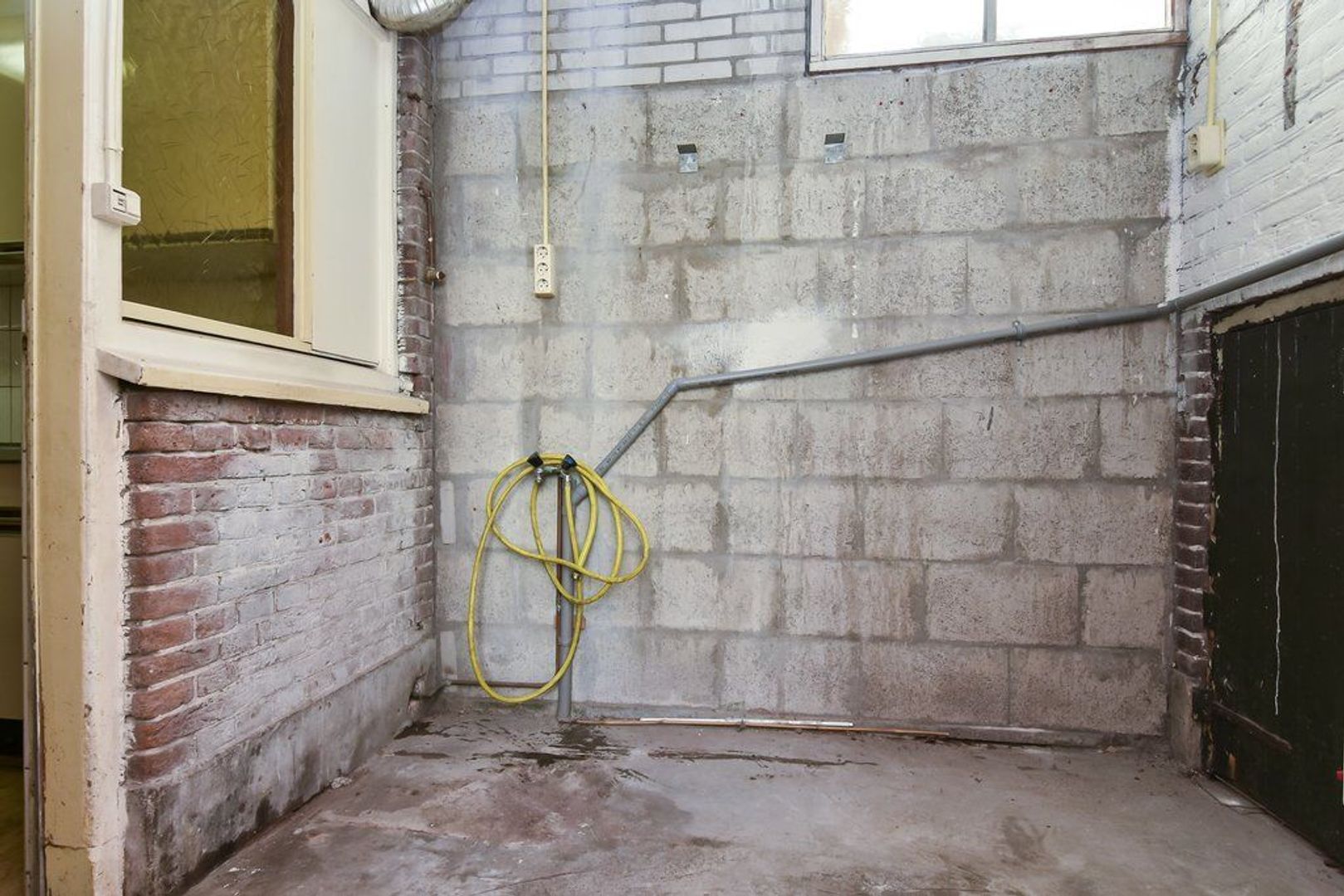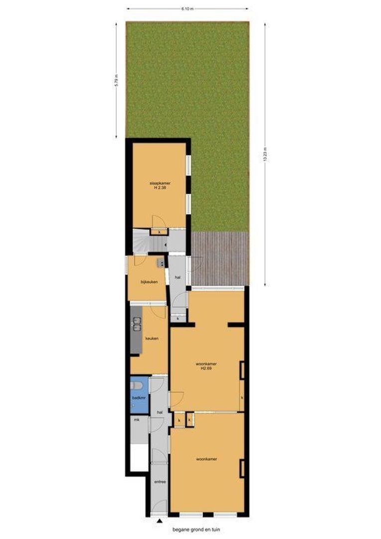 Entree, tochtportaal, gang, met ruime trapkast met meterkast installatie, toilet/douchecombinatie. Woon/eetkamer 1115x372, ca. 42m2. Eenvoudige keuken 344x191. Bijkeuken 229x191 thans wasmachinekamer met opstelplaats voor cv combi ketel Remeha Tzerra 2017, ideale ruimte voor badkamer! Gang naar achteruitbouw, hoofdslaapkamer 428x268, trap naar 1e etage alwaar 2 slaapkamers: 210x175 en332x268. Royale L-vormige achtertuin op de middag- en avondzon gelegen 13.23 meter diep bij 6.10 meter op zijn breedst, ca. 55m2.