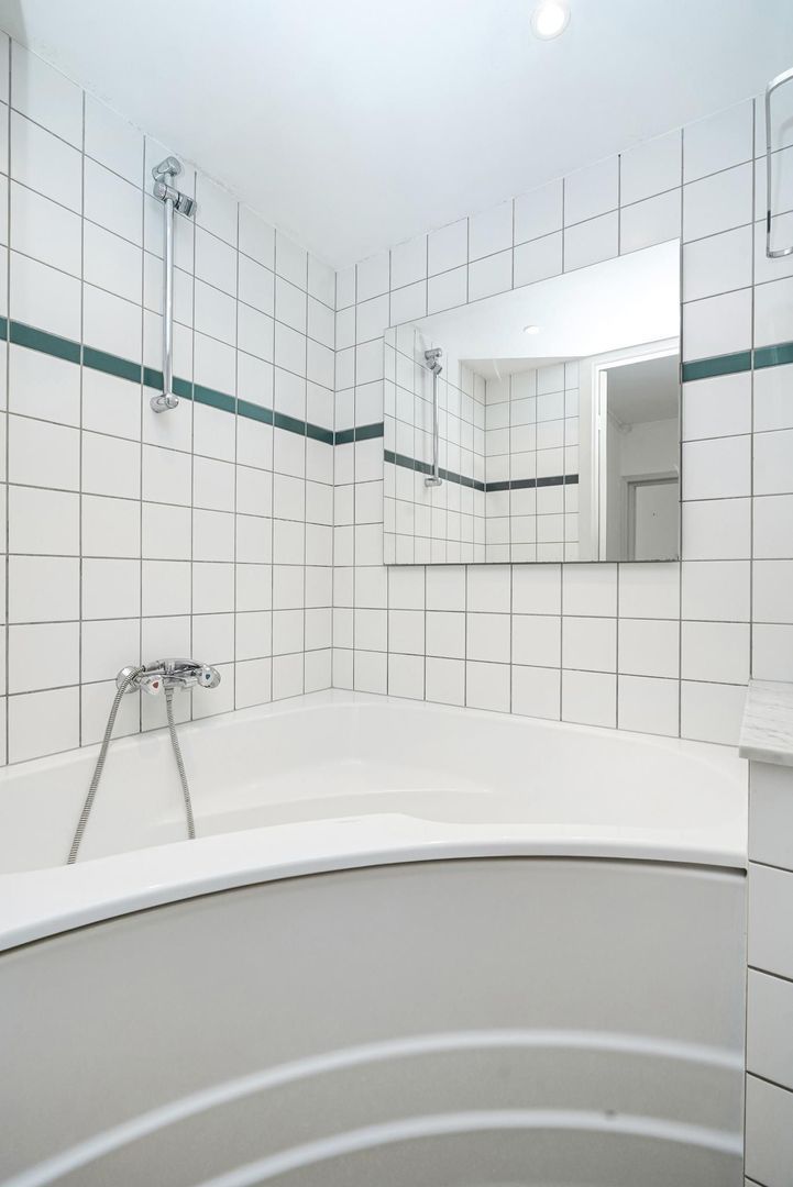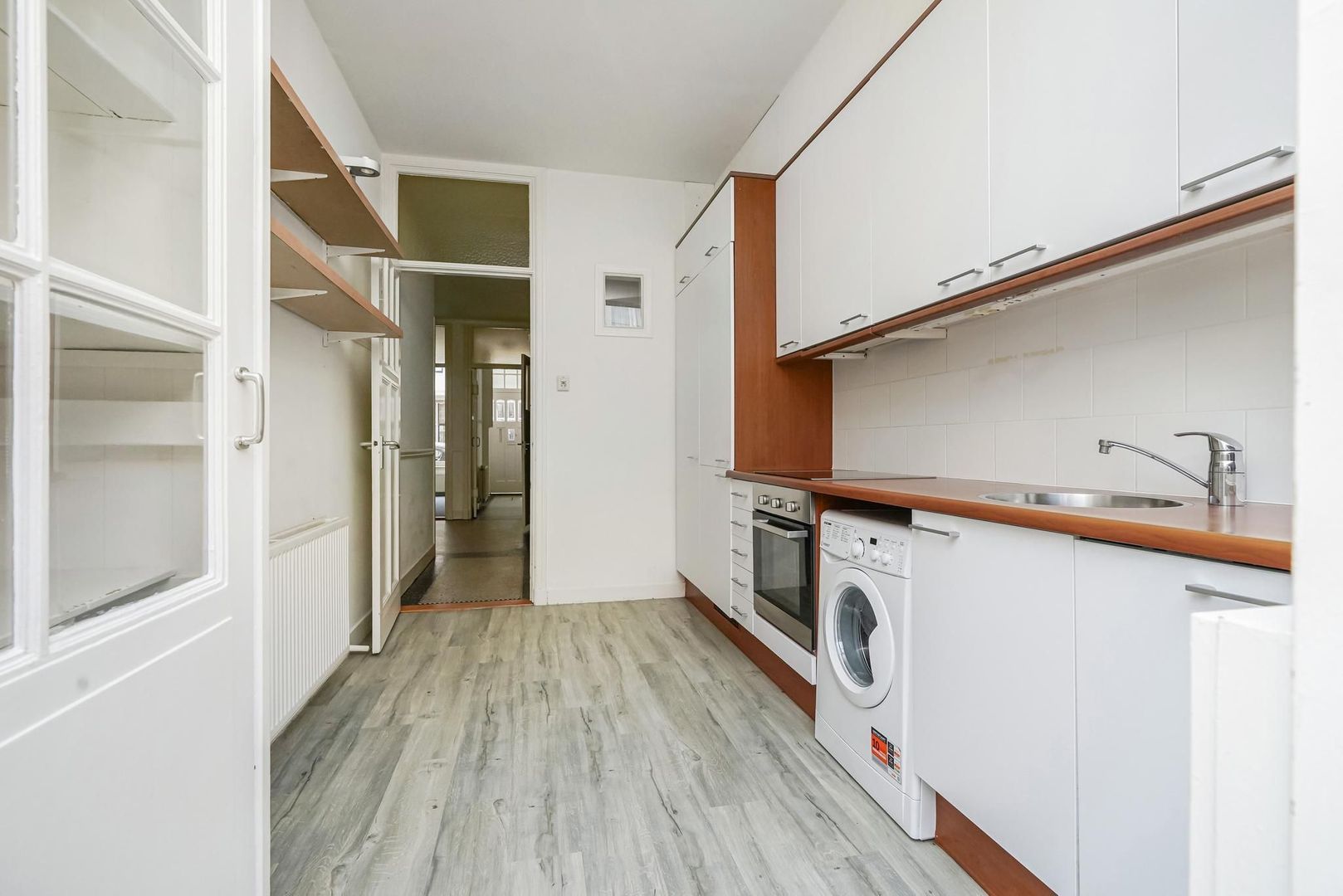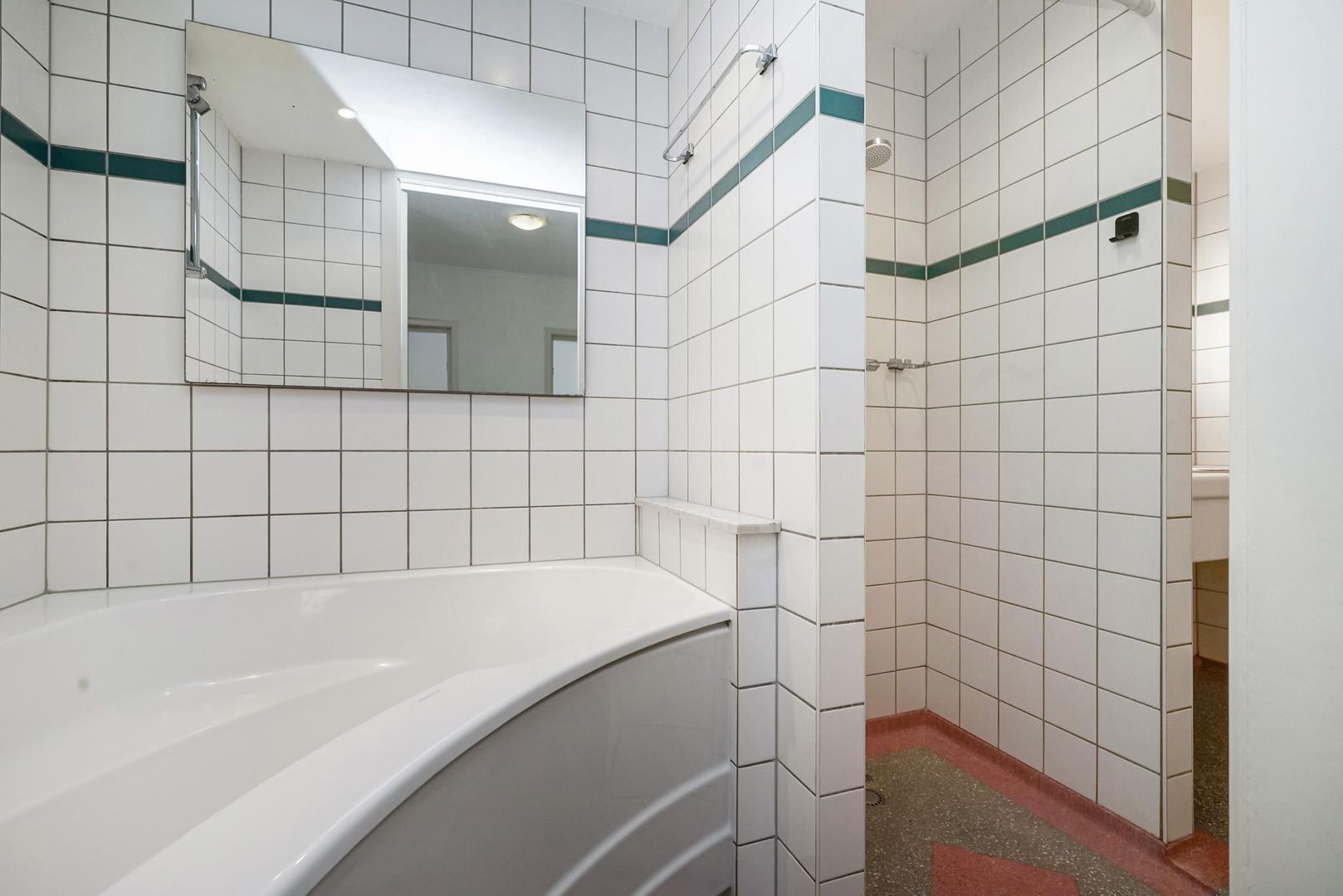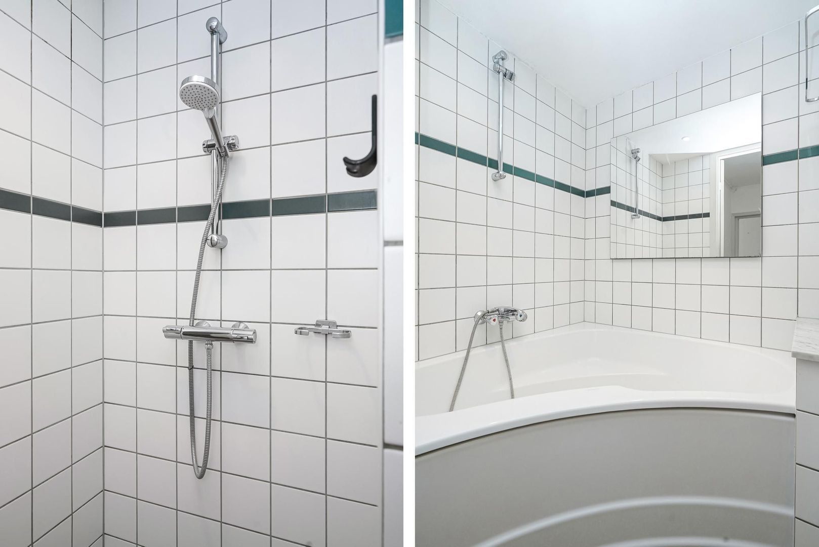 Terug naar de hal met toegang tot badkamer, hoewel deze niet groot oogt is hij voorzien van alle benodigde voorzieningen: Ligbad, inloopdouche en wastafelmeubel. Separaat toilet. Grenzend aan hal bevindt zich een gang naar de lichte keuken welke is voorzien van alle benodigde inbouwapparatuur zoals: koel/vriescombinatie, elektrische kookplaat (2025), oven, afzuigkap, vaatwasmachine en zelfs nog ruimte voor een wasmachine. Ook vanuit de keuken toegang tot de voornoemde achtertuin.