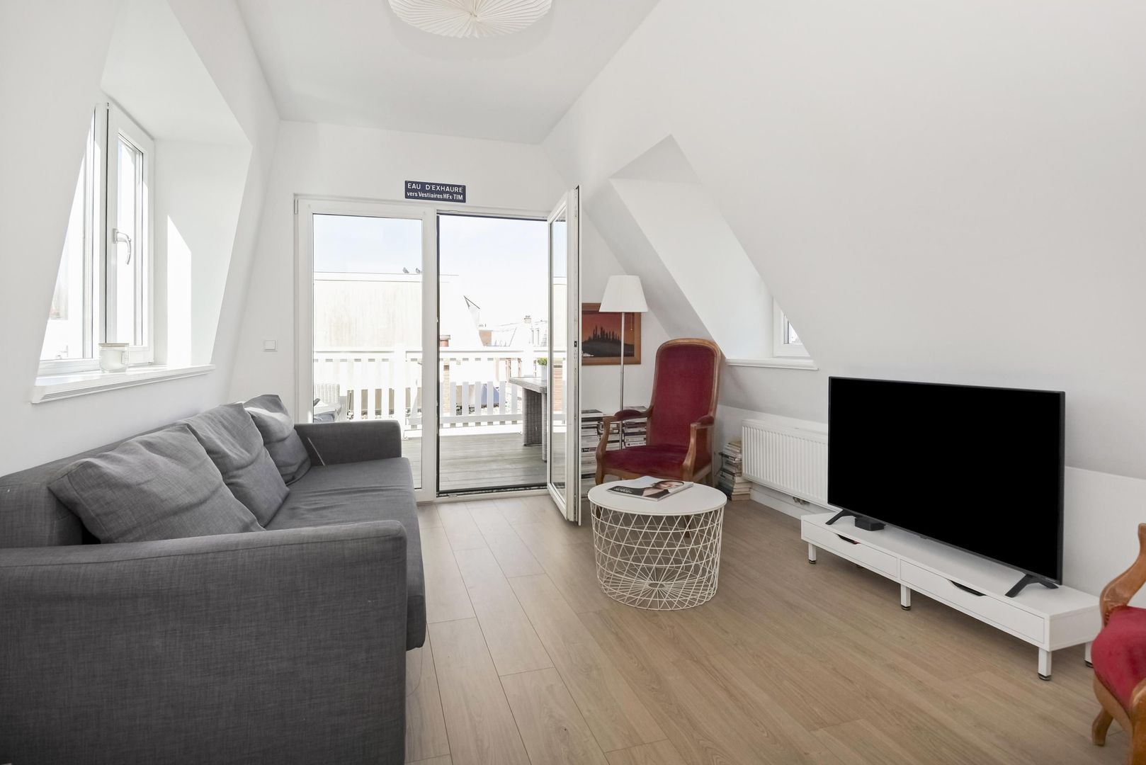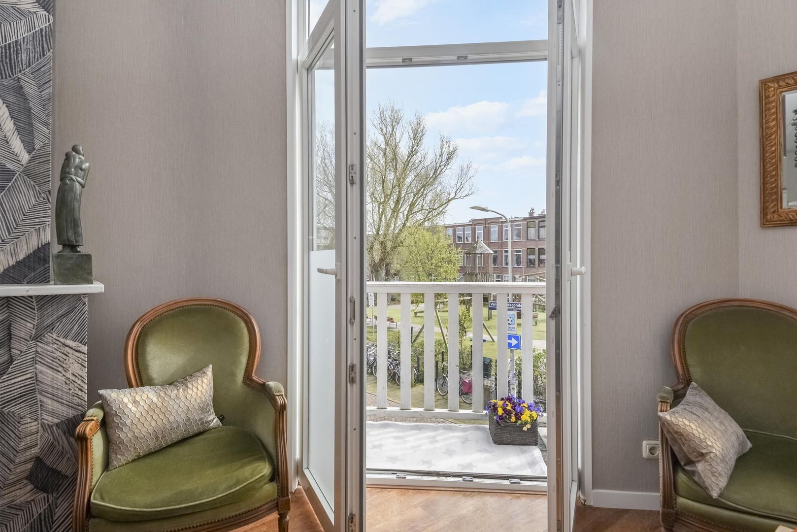 The sun shines on the front of the home and on the balcony from the morning and afternoon, while it is already lovely to open the double French doors in the spring, in this time of the year.