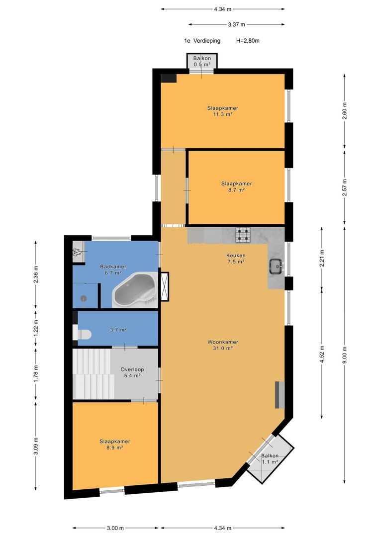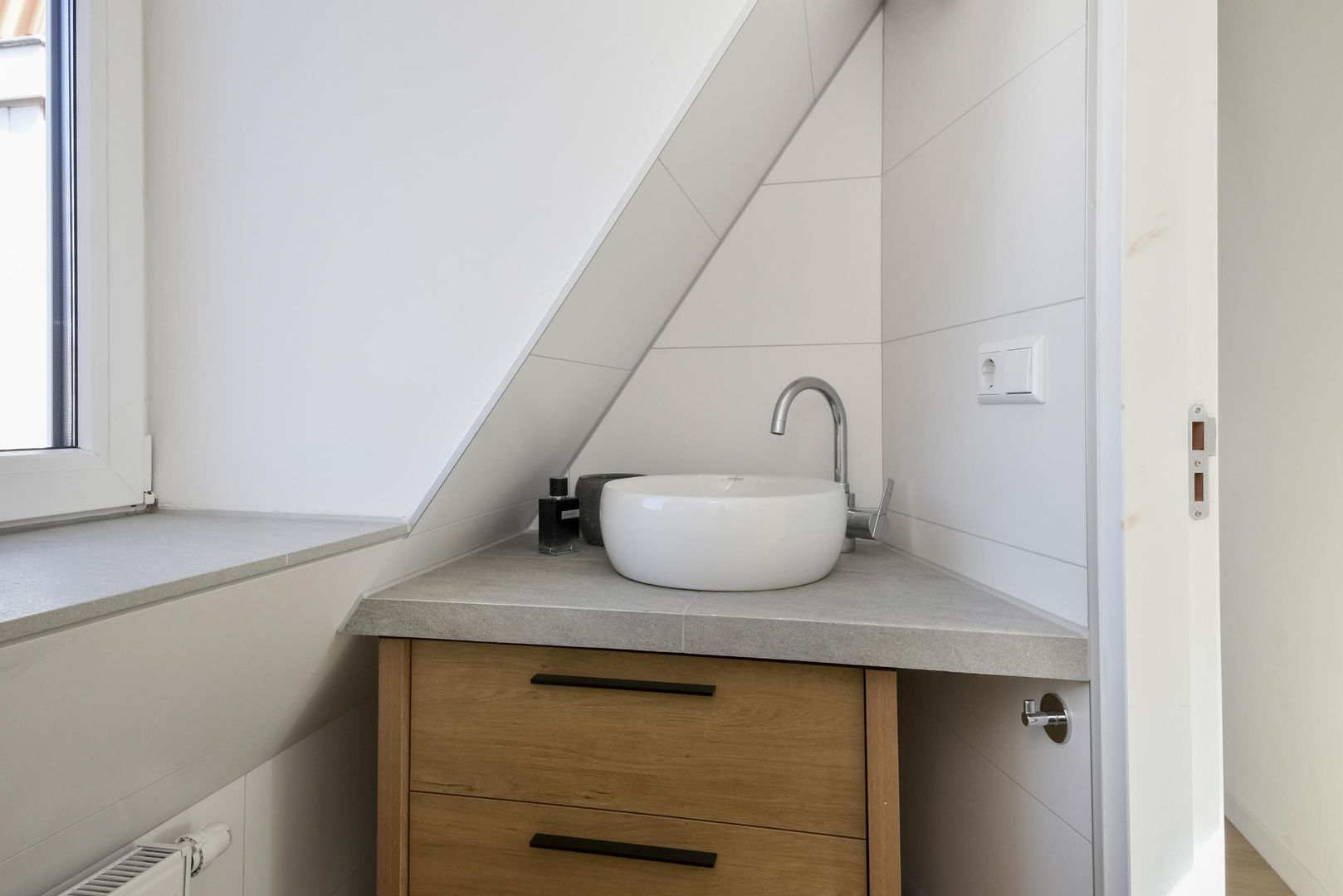 Due to the sloping roof level, the bedrooms have a playful layout, but are certainly spacious and bright thanks to the many windows. A nice feature is that a second modern bathroom has also been created, featuring a toilet, sink, and walk-in shower. Special features: