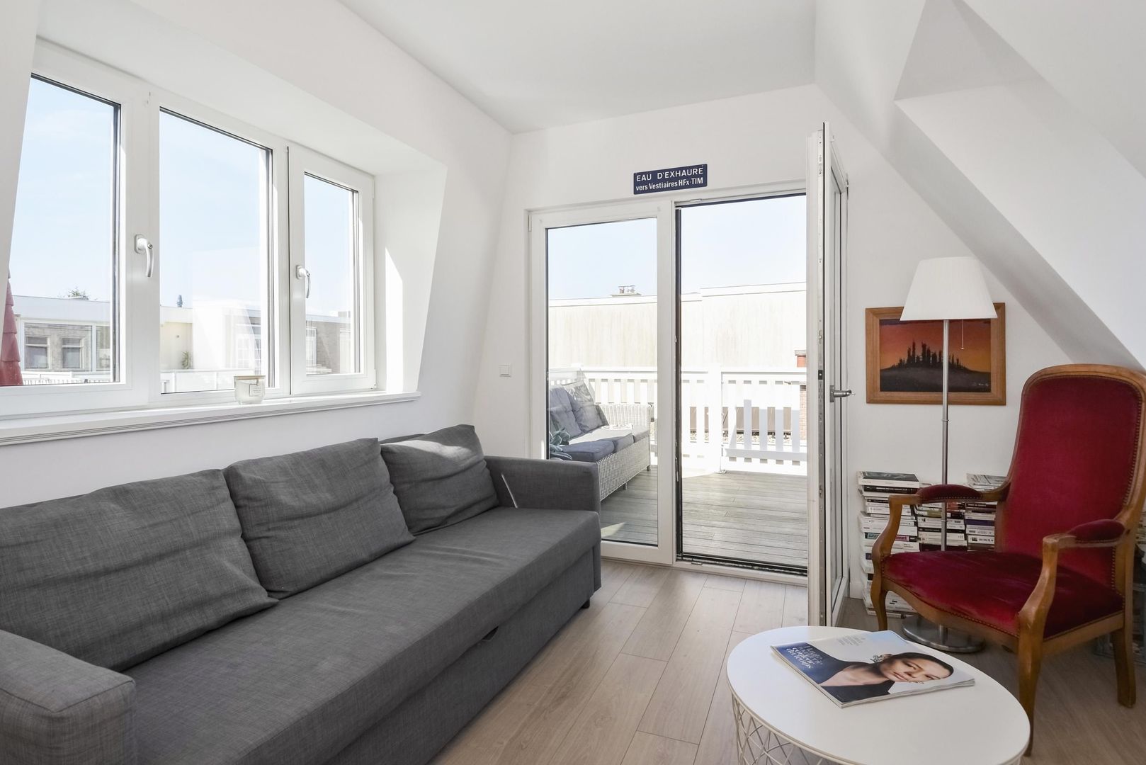 This floor was built in 2023 and features a bright landing thanks to the skylight. This floor also has a total of 3 spacious bedrooms, which are currently used as 2 bedrooms and 1 as a family/chill room with access to the sunny terrace approx. 4.20 x 2.55 with afternoon and evening sun!