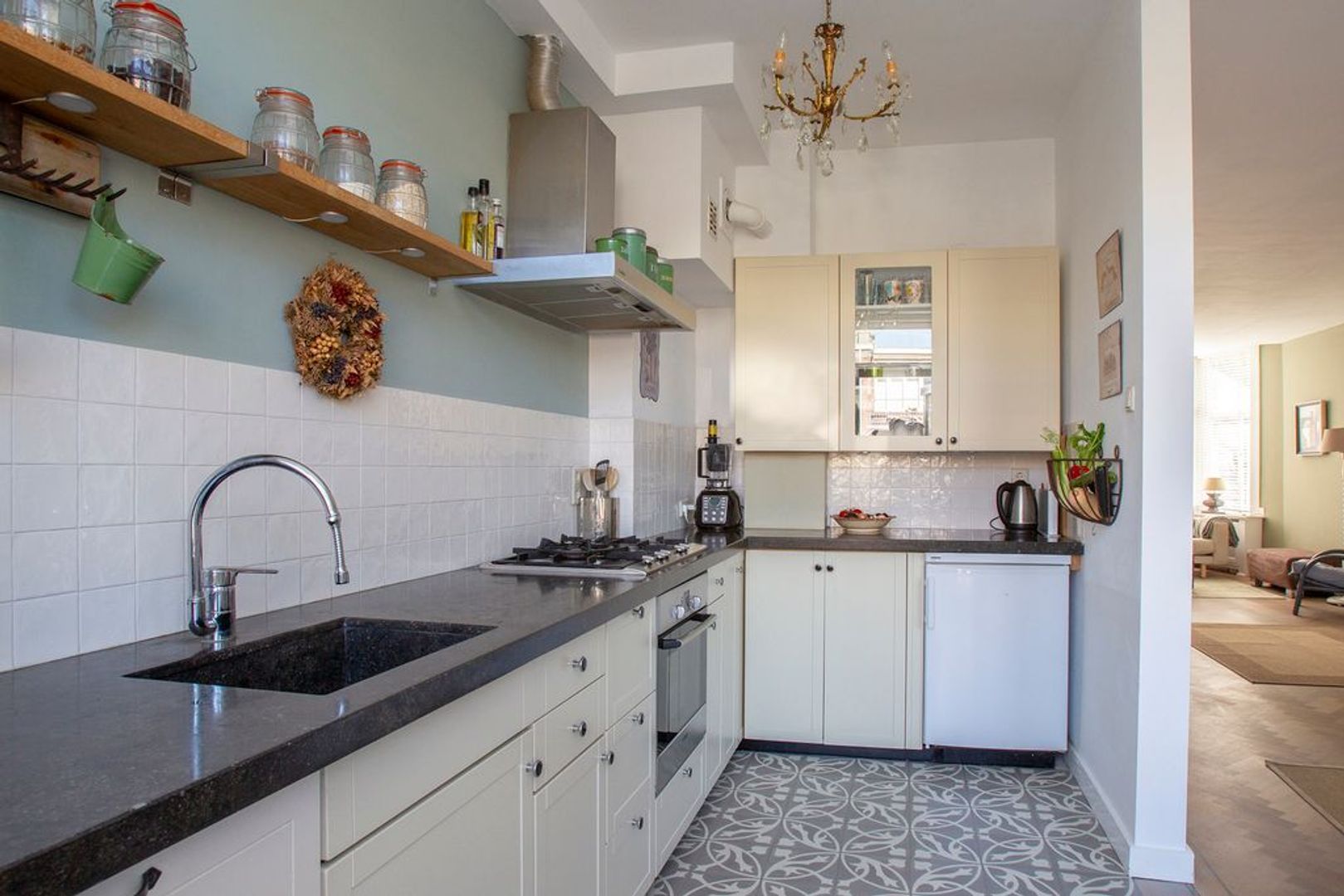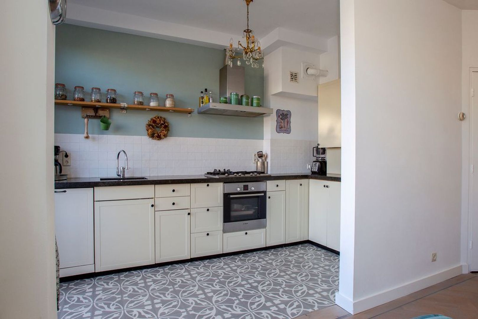 Keuken (ca. 3.96x1.90) voorzien van modern keukenblok met gaskookplaat, oven, afzuigkap, vaatwasser en opstelling cv-combiketel.