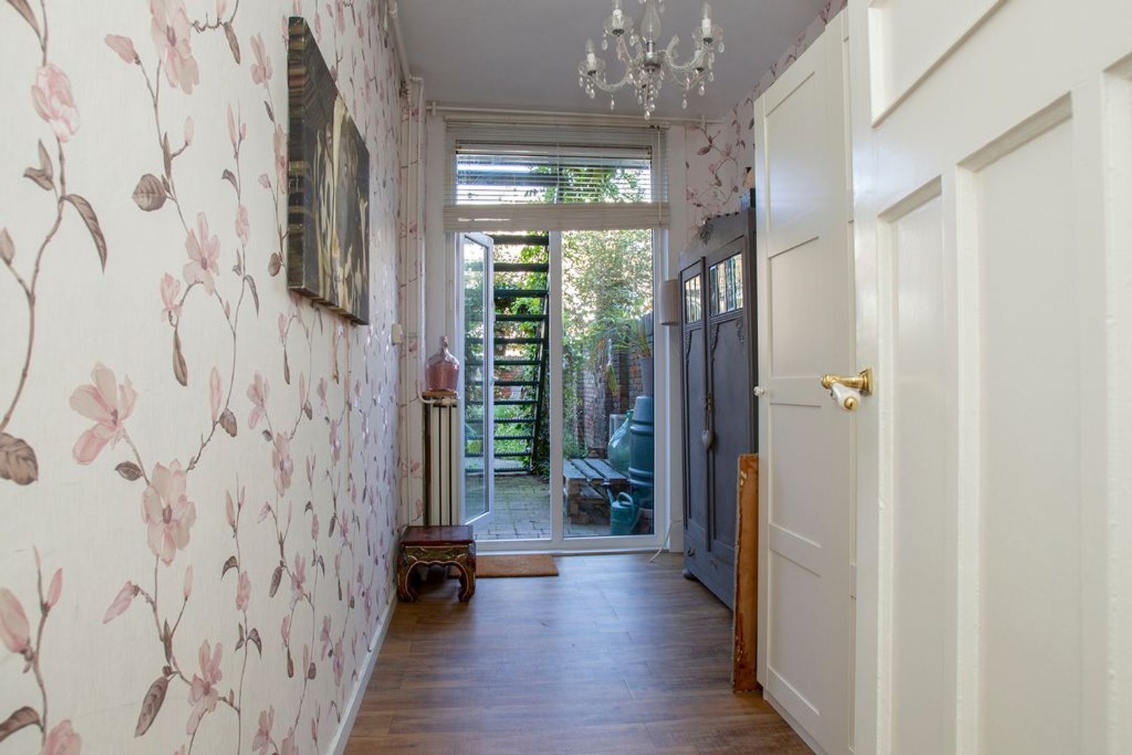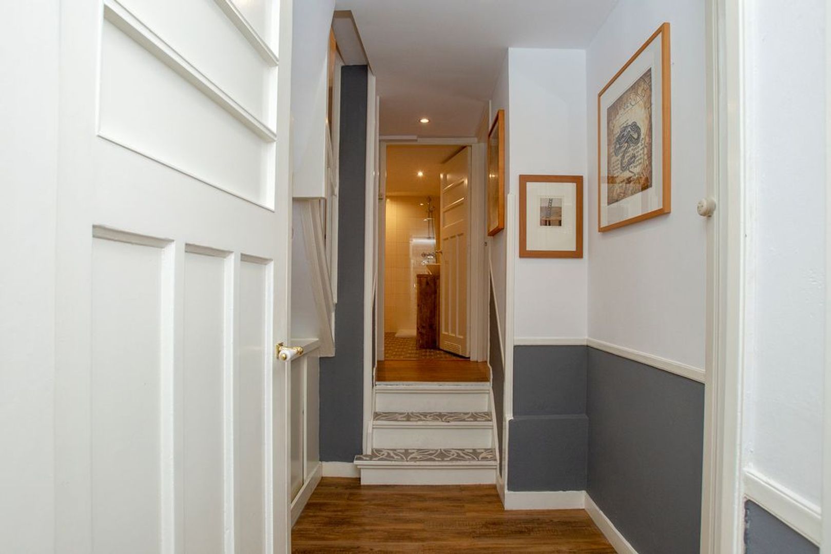 Entree op straatniveau, vestibule, hal met trap naar het souterrain en toilet met fonteintje.