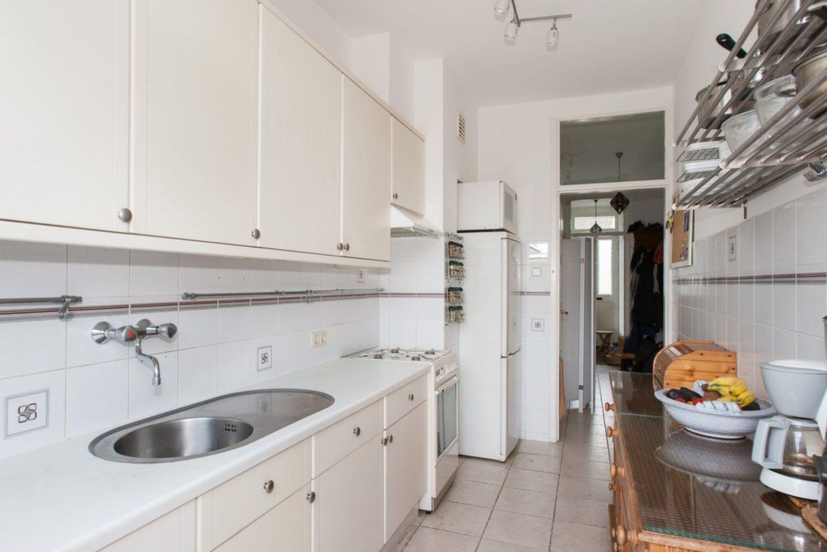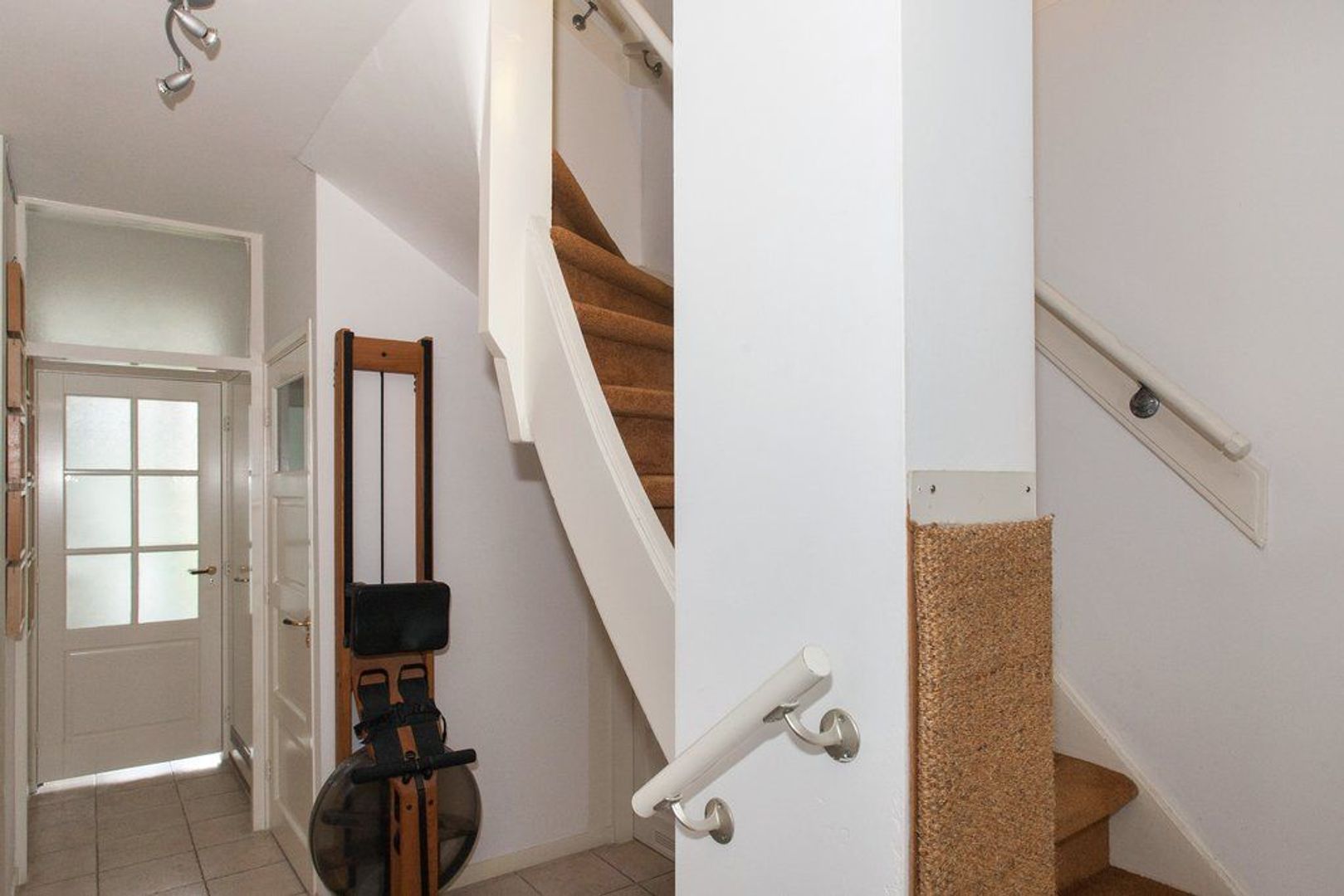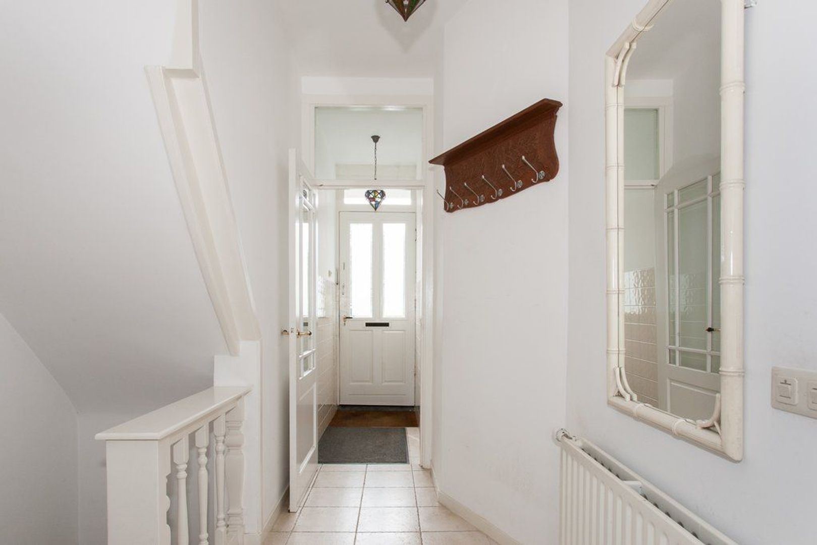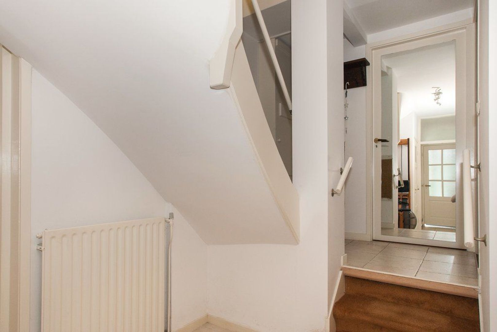 Entree op straatniveau, vestibule, hal met trap naar het souterrain en toilet met fonteintje.