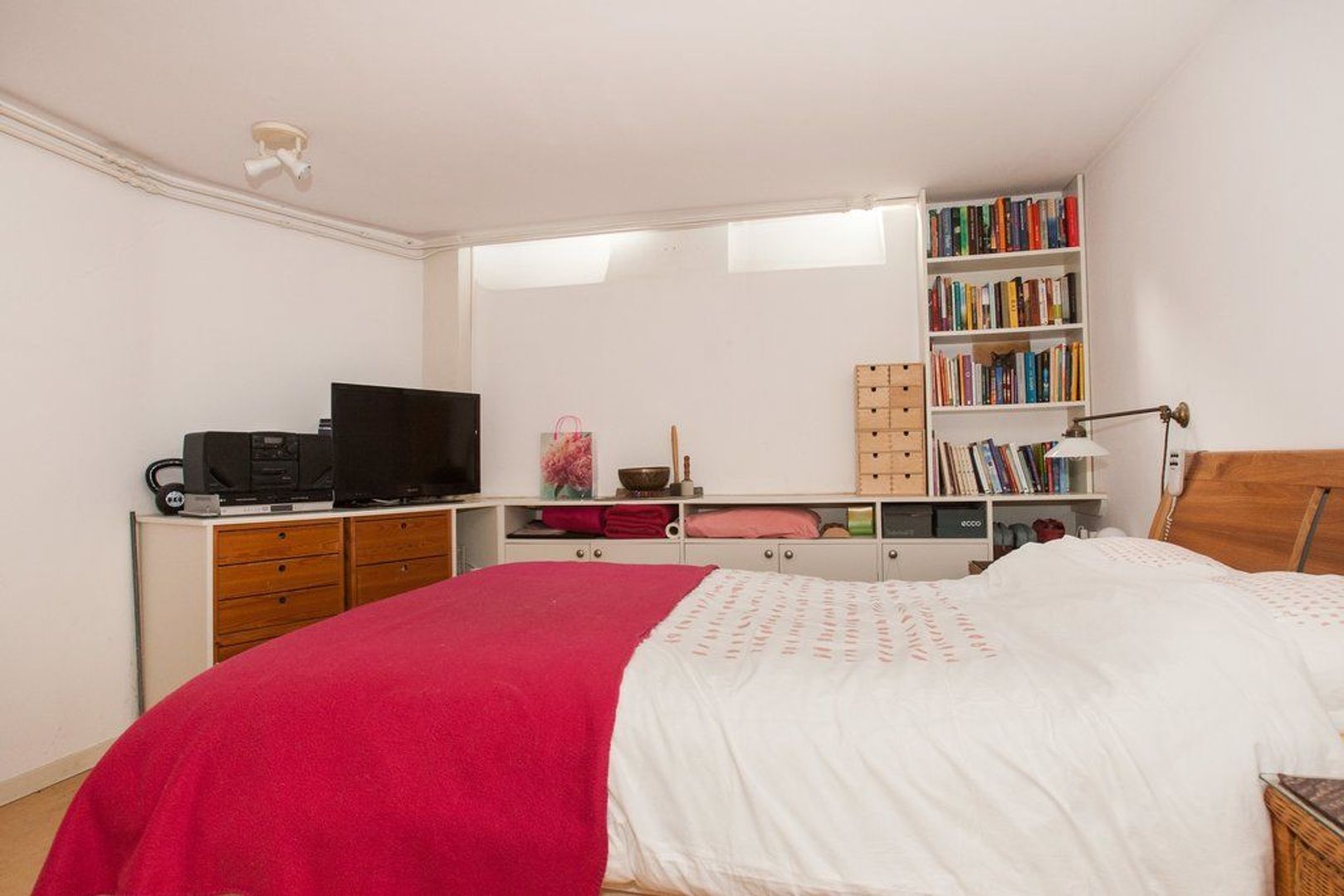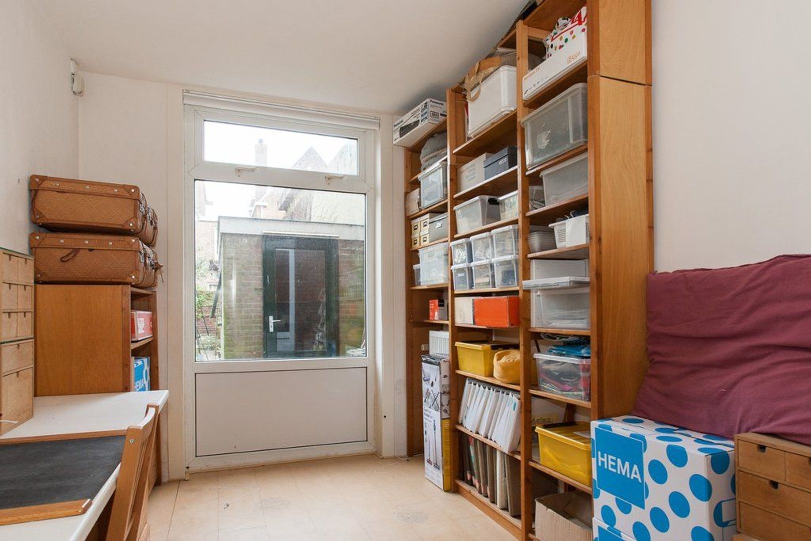 Binnentrap van begane grond naar souterrain, overloop met meterkast en handige berging (ca. 3.15x1.94), toegang tot slaapkamer aan de voorzijde gelegen (ca. 4.95x3.55)
