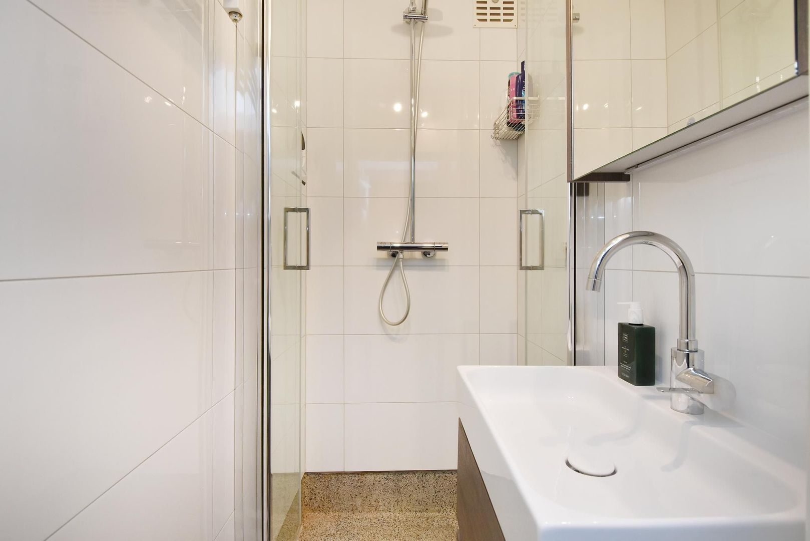 De moderne keuken is in 2021 geplaatst en uiteraard voorzien van alle benodigde inbouwapparatuur: RVS afzuigkap, elektrische kookplaat, oven met magnetron functie, vaatwasmachine en zelfs nog een inbouw wasmachine!. Hier tegenover gelegen bevindt zich nog meer kastruimte en zelfs nog wat extra aanrechtbladruimte. Ook vanuit de keuken is het voornoemd balkon (met bergkast) bereikbaar. Modern en trendy betegelde badkamer en separate toiletruimte (beiden 2021). De badkamer is voorzien van een stort- en handdouche, thermostaatkraan, douchedeuren, handdoekradiator en wastafelmeubel met spiegelkast.