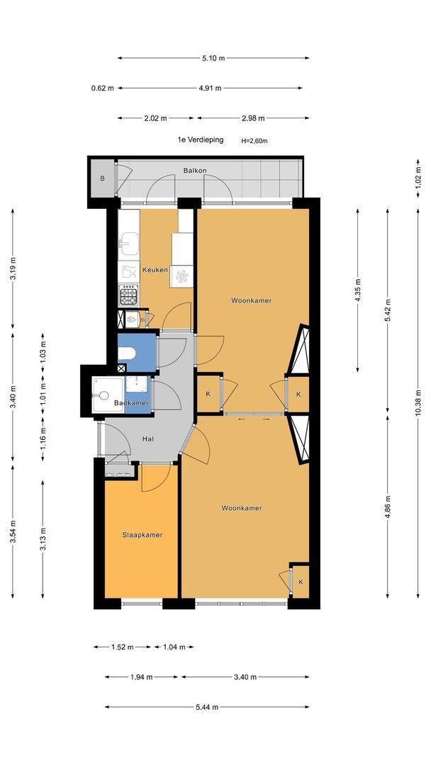 - woonoppervlakte 55m2, gemeten conform NEN 2580