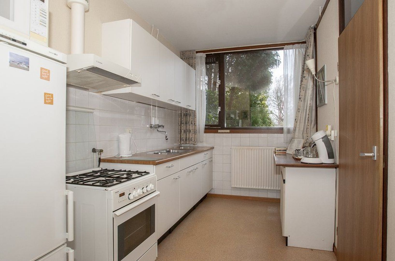 Voortuin met mogelijkheid voor parkeerplaats op eigen terrein, entree woning, hal met toilet met wasfontein, vanuit de hal heeft u toegang tot de garage/berging ca. 294x590. Toegang tot de lichte, heerlijke en tuingerichte woonkamer ca 415x590, toegang tot de fraai aangelegde achtertuin 1335x590 met vrijwel de gehele dag zon, de tuin grenst aan een fraaie vijverpartij welke u als een oase van rust zult ervaren. De eenvoudige keuken bevindt zich aan de voorzijde en staat in een open verbinding met de woonkamer.