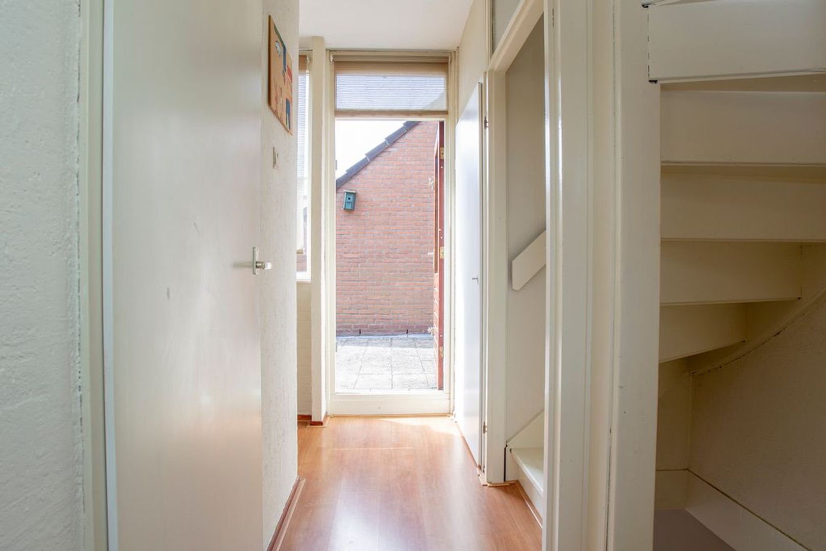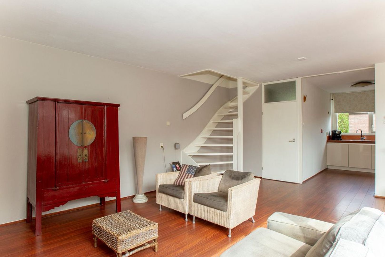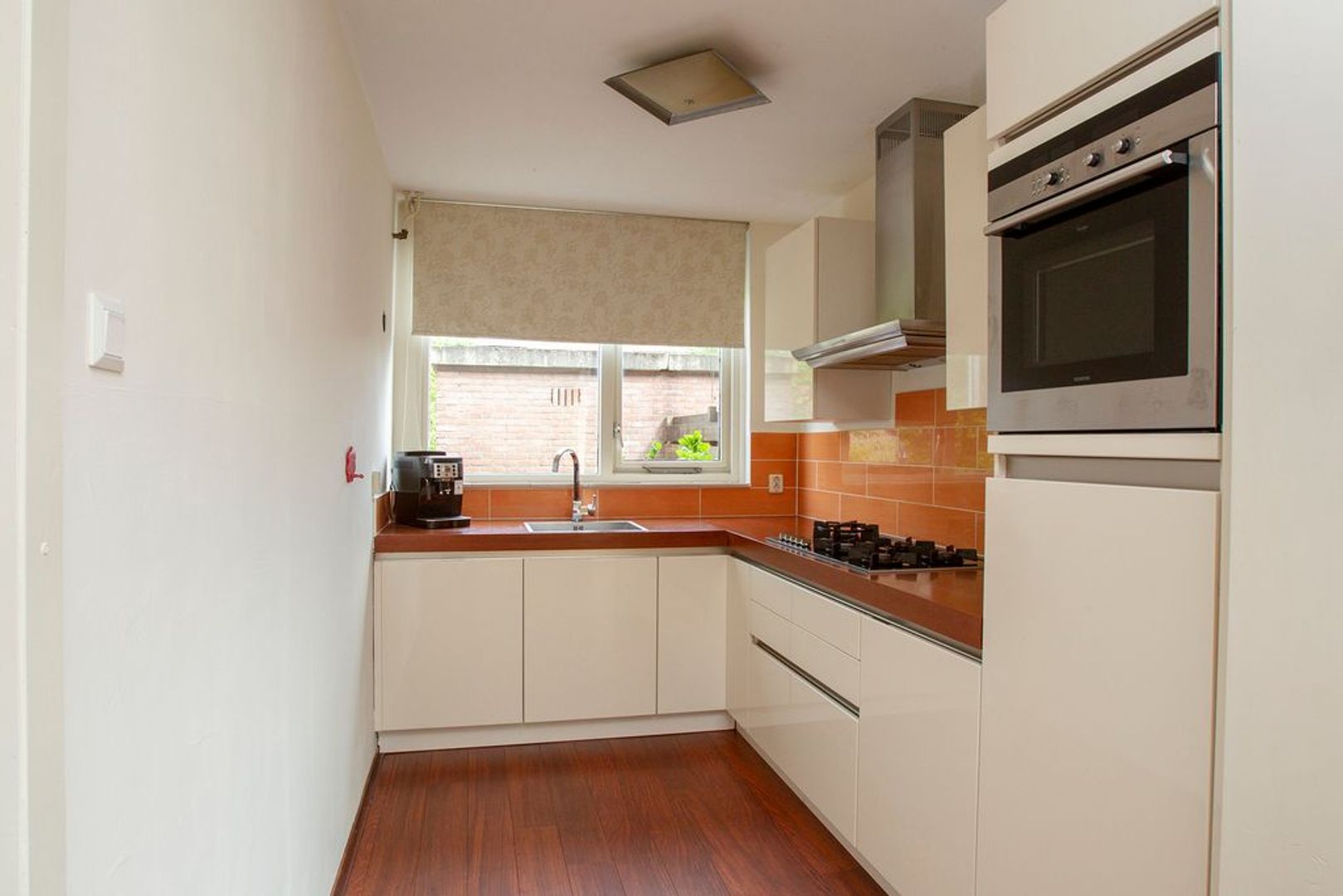Voortuin met (fietsen-)berging, entree woning, hal met meterkast en keurig toilet. Lichte en ruime woon-/eetkamer met open haard en moderne open keuken voorzien van kookplaat, afzuigkap, combi-oven/magnetron, koelkast, vriezer en vaatwasser.