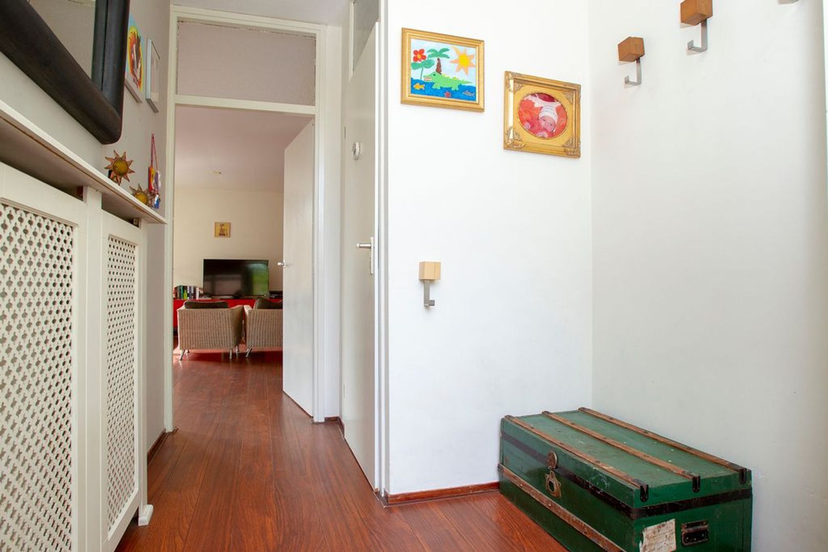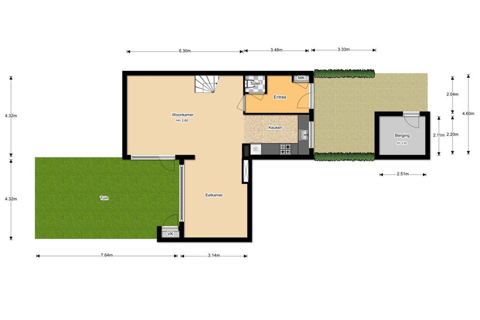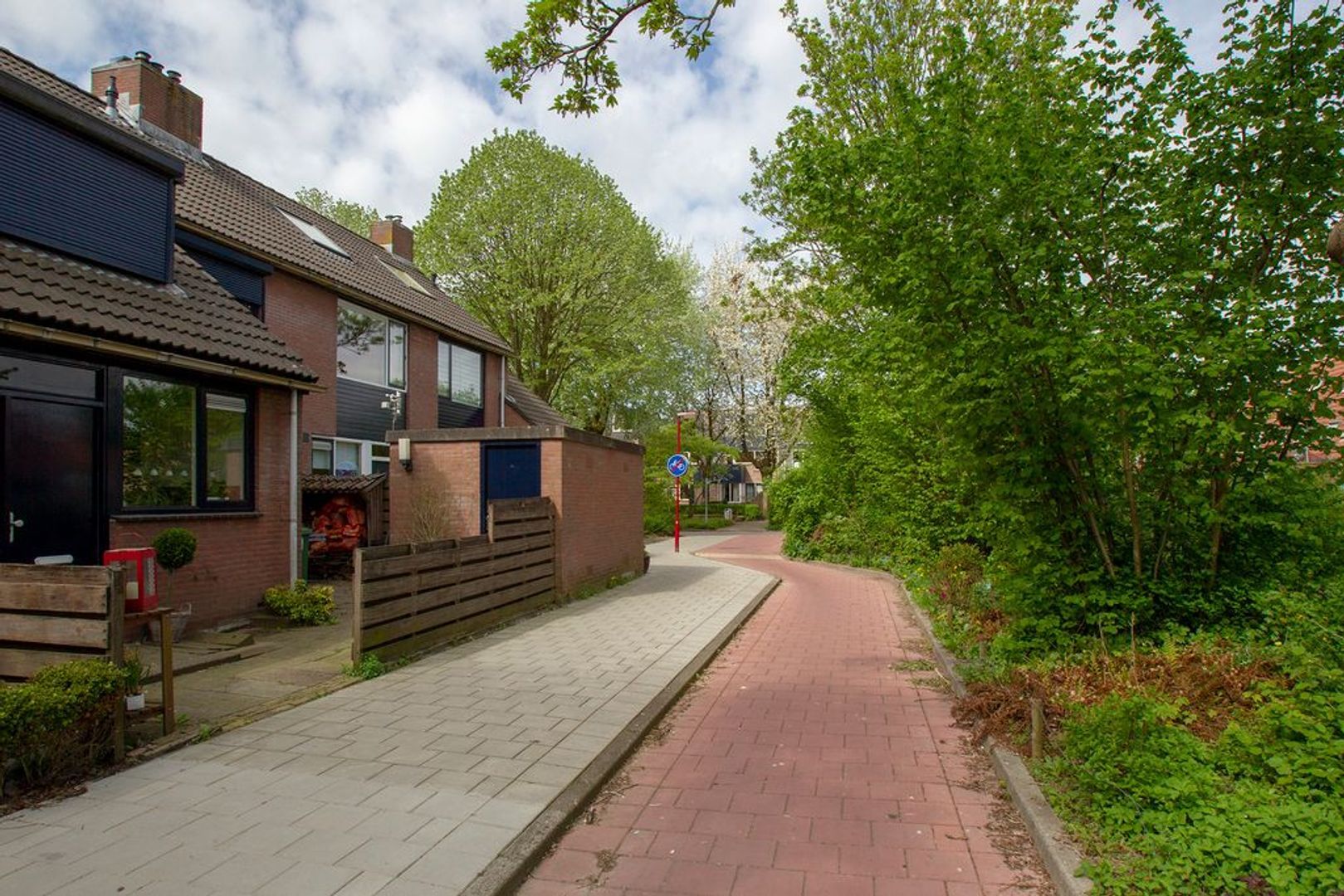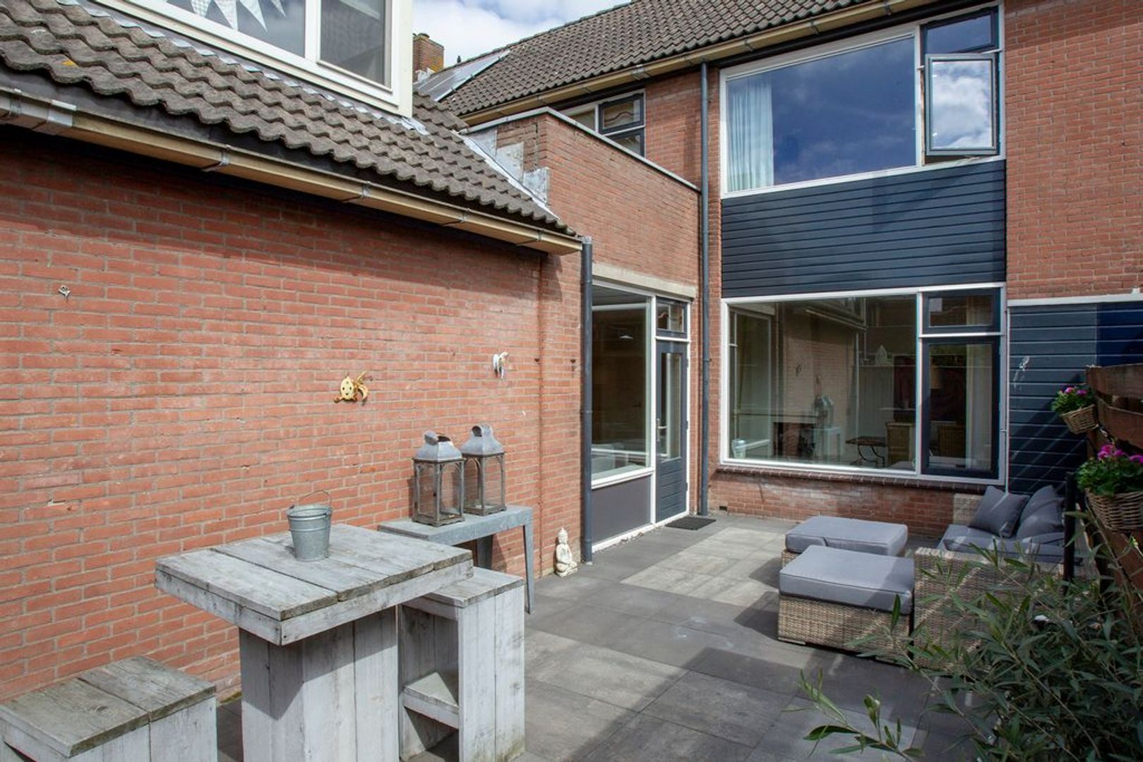 Voortuin met (fietsen-)berging, entree woning, hal met meterkast en keurig toilet. Lichte en ruime woon-/eetkamer met open haard en moderne open keuken voorzien van kookplaat, afzuigkap, combi-oven/magnetron, koelkast, vriezer en vaatwasser.